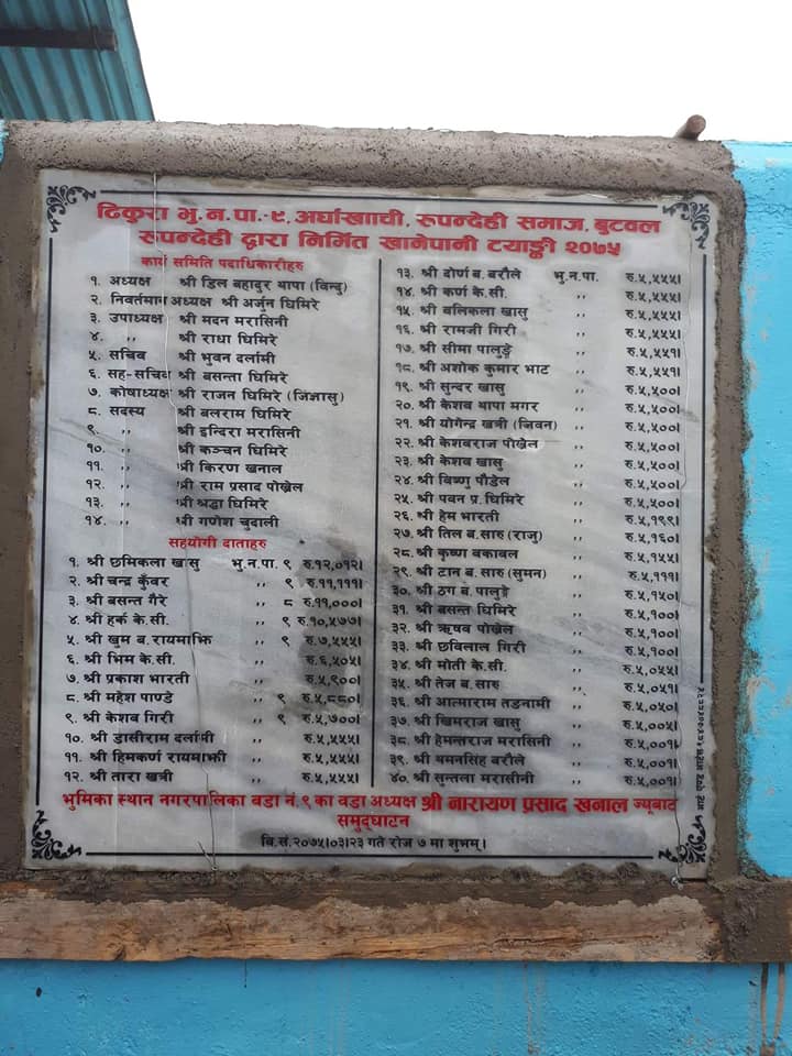 आफ्नै गाँउठाँउमा प्रसस्त सम्भावनाहरु रहेको तर कसैको ध्यान नपुगेकोले आफुहरुले सक्रियता देखाएको समाजका सचिव भुवन दर्लामीले बताउनु भयो । विभिन्न व्यक्तित्वबाट आर्थिक संकलन गरि खानेपानी ट्यांंकी निर्माण कार्य गरिएको र अझैपनी काम बाँकी रहेकाले ट्यांंकीको कुल लागत २ लाख ५० हजार पुग्ने समाजका कोषाध्यक्ष राजन घिमिरेको भनाई छ । सरकार एक्लैले सबैकुरा नसक्ने भएकाले युवाहरुले सक्रियता देखाउनु पर्ने र देश बिकासका लागी सबै आआफ्नो ठाँउबाट लाग्नुपर्ने समाजका अध्यक्ष डिल बहादुर थापा (बिन्दु)ले बताउनु भयो । उहाँले खानेपानी ट्यांकी निर्माण कार्य सम्पन्न गर्न सहयोग गर्ने सबैलाई धन्यवाद पनी ज्ञापन गर्नुभयो ।