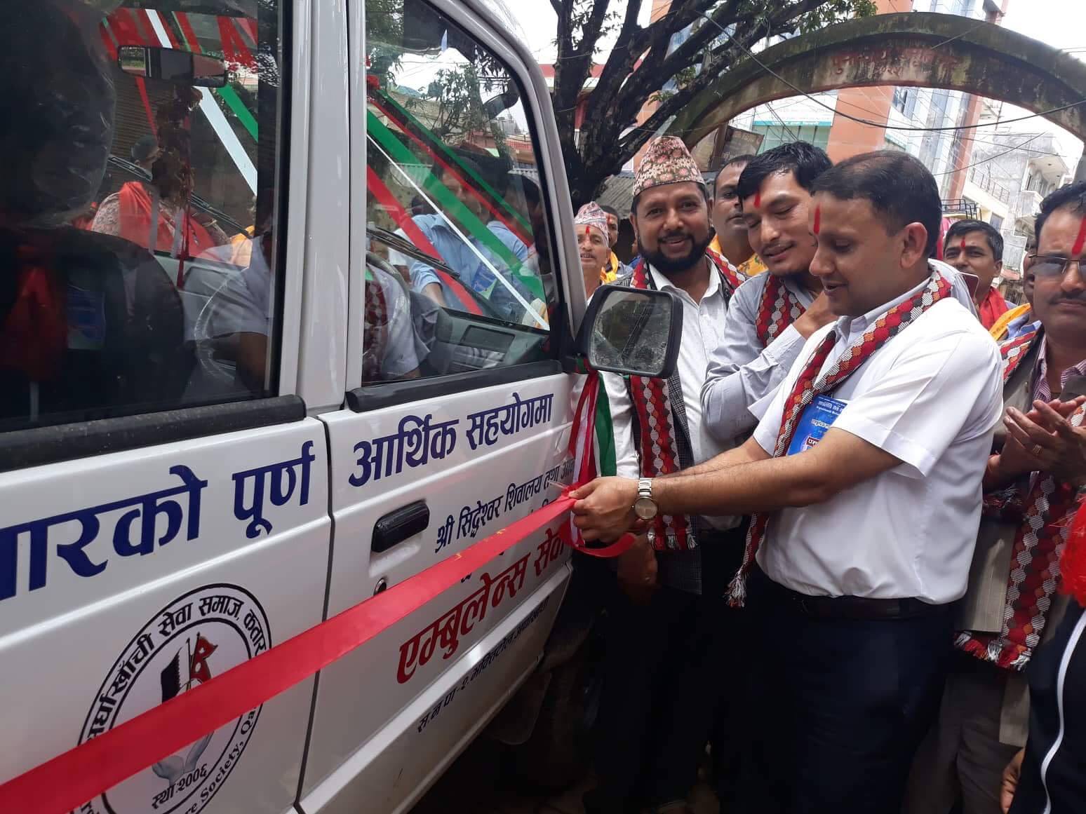 अर्घाखाँचीबाट रोजगारीकोलागि कतार गएका युवाहरुको पुर्ण आर्थिक लगानीमा एम्बुलेन्स खरिद गरिद एक समारोहका बिच शिद्देश्वर सिबालय तथा आनन्द बृद्वाश्रम लाई एम्बुलेन्स हस्तान्तरण गरेको हो ।