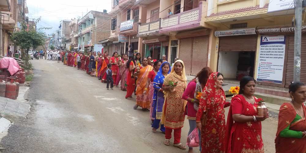 मन्दिरमा  रहेको धारोमा विभिन्न तीर्थहरुको  जल रहेको हुनाले त्यसबाट जल लगि बोल बम भन्दै बजारका बिभिन्न भाग परिक्रमा गरी सिद्धेश्वर सिवालय मन्दिरमा रहेको स्फटिकको शिवलिंगमा अर्पण गरिएको मन्दिरका संरक्षक नारायण खनालले बताए ।