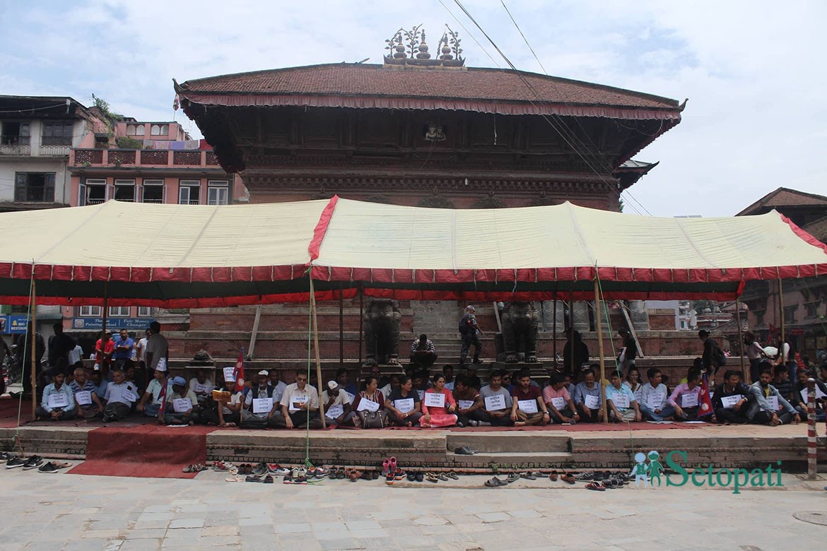 डा. गोविन्द केसीका समर्थनकहरू आइतबार काठमाडौंको वसन्तपुरमा सामूहिक अनसन बसेका छन्।