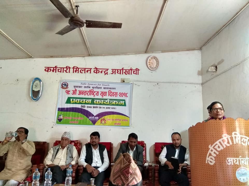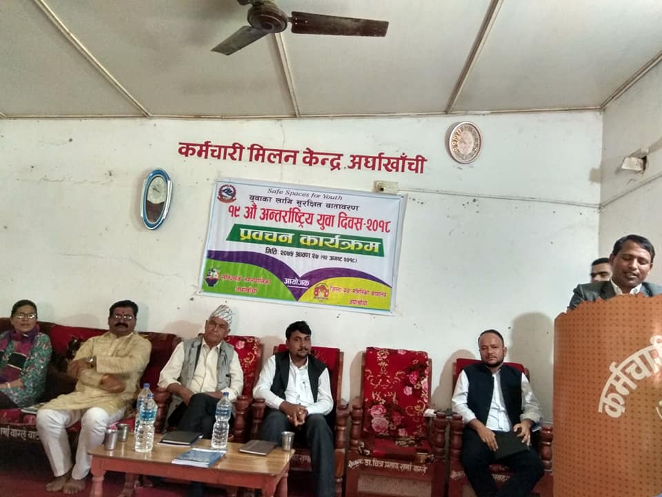सन्धिखर्क, अर्घाखाँची । अर्घाखाँची जिल्लाको सन्धिखर्कमा १९ अौ अन्तरास्ट्रिय युवा दिबस आज प्रबचन कार्यक्रम सहित सम्पन्न भएको छ।