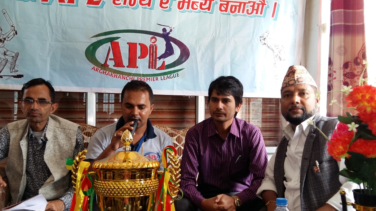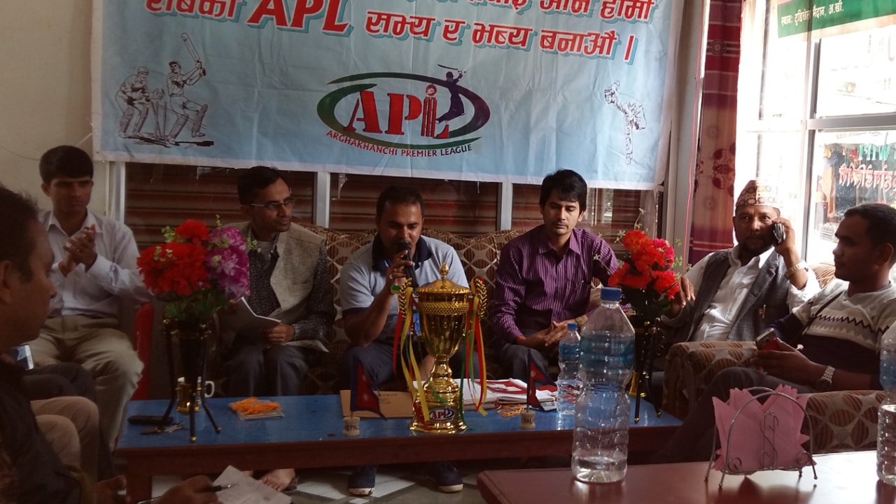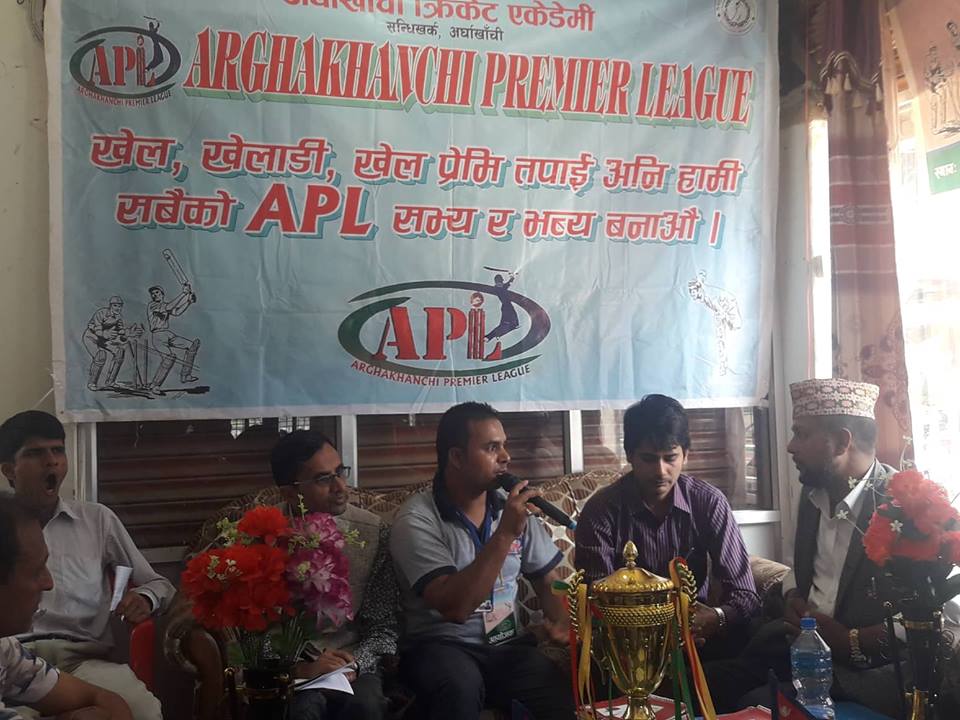 सन्धिखर्क, अर्घाखाँची । अर्घाखाँची प्रिमियर लिग एपीएलले शनिबार पत्रकार सम्मेलन गरी सबै भन्दा ठुलो द्रोस्रो क्रिकेट प्रिमियर लिग सन्धिखर्कमा आगामी असाेज १२ गतेबाट शुरु हुने जनाएको छ ।