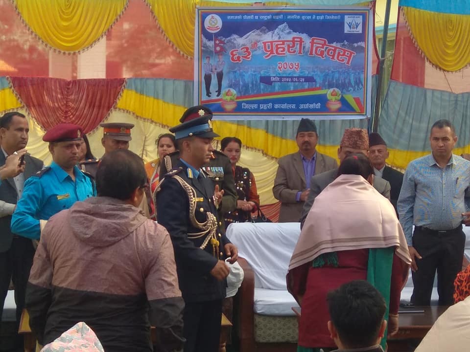 अर्घाखाँची असौज २५  । जिल्लाको शान्ती सुरक्षा र अमन चयनमा प्रहरीले पु-याएको योगदान निक्कै प्रसंसनीय भएको भन्दै एककार्यक्रमका सहभागि बक्ताहरुले मुक्त कण्ठले प्रसंसा गरेका छन् ।