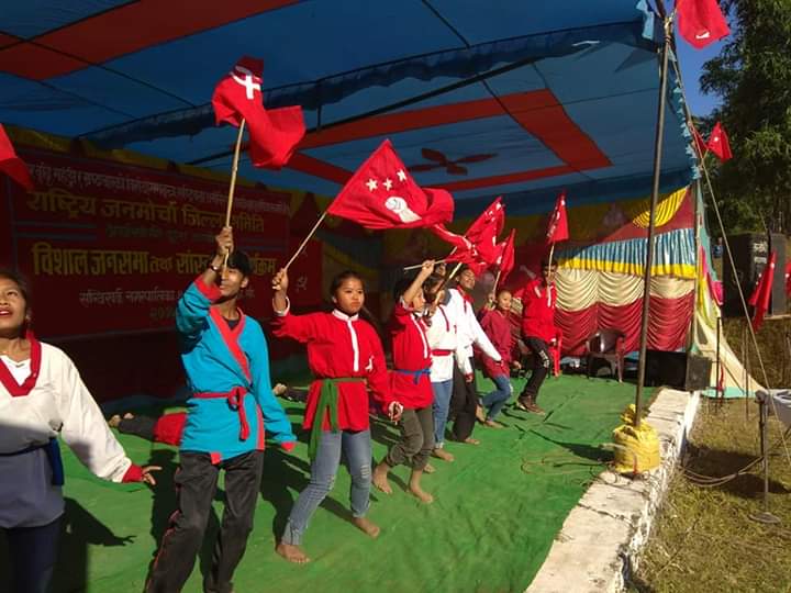 उहांले थप्नुभयो,“समृद्धि त सरकारलाई मात्रै आयो जनतालाई नआउने भयो ।”उहांले सबै खाले गलत कदमलाई निस्तेज पार्ने गरि काम गर्न सरकारलाई सुझाव समेत दिनुभएको छ । राष्ट्रिय जनमोर्चाका जिल्ला अध्यक्ष थम्मन के.सी.को अध्यक्षता,उपाध्यक्ष गोपाल पौडेलको स्वागत मन्तव्य र सचिव बाबुराम सुनारको संचालनमा सम्पन्न सभालाई सम्बोधन गर्दै अखिल नेपाल किसान महासंघका केन्द्रिय अध्यक्ष भैरव राज रेग्मी,राष्ट्रिय जनमोर्चा प्रदेश ५ का सदस्य शेर बहादुर बिसी, नेता सागर के.सी.,अखिल नेपाल महिला संघकी केन्द्रीय उपाध्यक्ष शकुन्तला राना, अखिल नेपाल युवक संघका जिल्ला अध्यक्ष कुलराज खनाल,अखिल छैठौंका केन्द्रिय उपाध्यक्ष देवेन्द्र कुंवर लगायतका बक्ताहरुले सम्बोधन गर्दै नेपाली जनता कसैको दास र गुलामी नभएको भन्दै मुलुकको बाग्डोर समाल्नेहरूले विदेशीको चाकडी गरेकोमा आफूहरु चिन्तित भएको बताउनु भएको छ ।