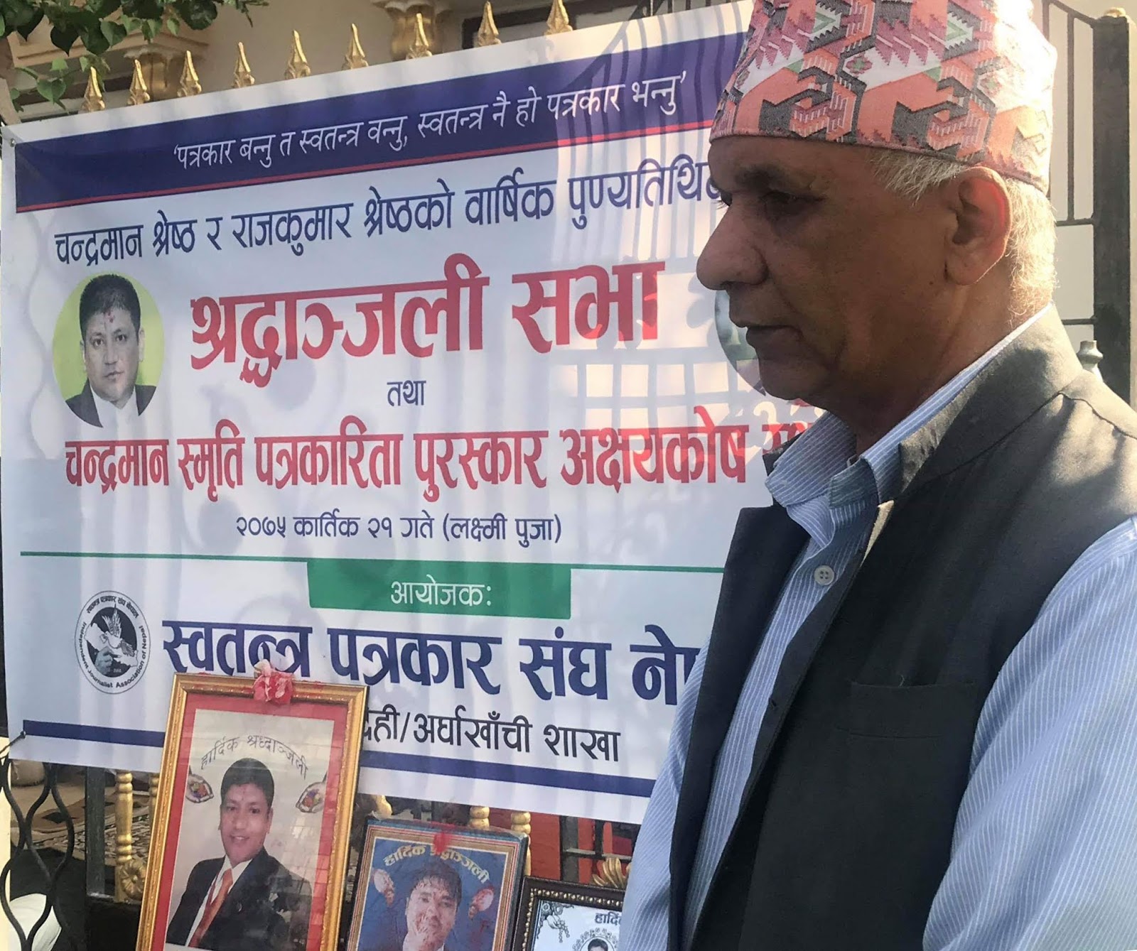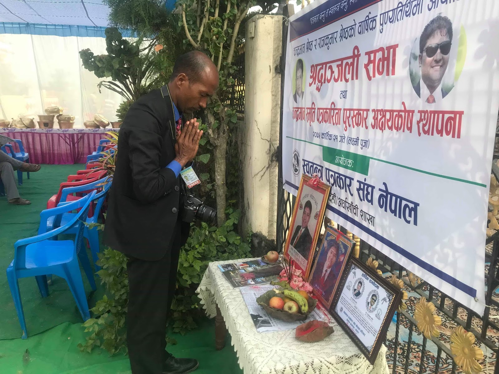 कार्यक्रममा प्रस युनियन रुपन्देहीका अध्यक्ष रेखा भुषाल, उपाध्यक्ष कबिन्द्र नेपाल, प्रगतिशील पत्रकार संघ रुपन्देहीका सचिव डि आर बञ्जाडे, स्वतन्त्र पत्रकार संघ नेपालका केन्द्रिय उप महासचिव राजेन्द्र जंग रायमाझि, कोषाध्यक्ष बिरेन्द्र पाण्डे, कास्की शाखा उपाध्यक्ष कृष्ण रानाभाट, पत्रकार शरिना मरासिनि, रेनुका गिरि, खेम पाठक लगायत अन्य उपस्थितले मृतकको तस्विरमा पुष्प गुच्छा अर्पण गरेका थिए ।
