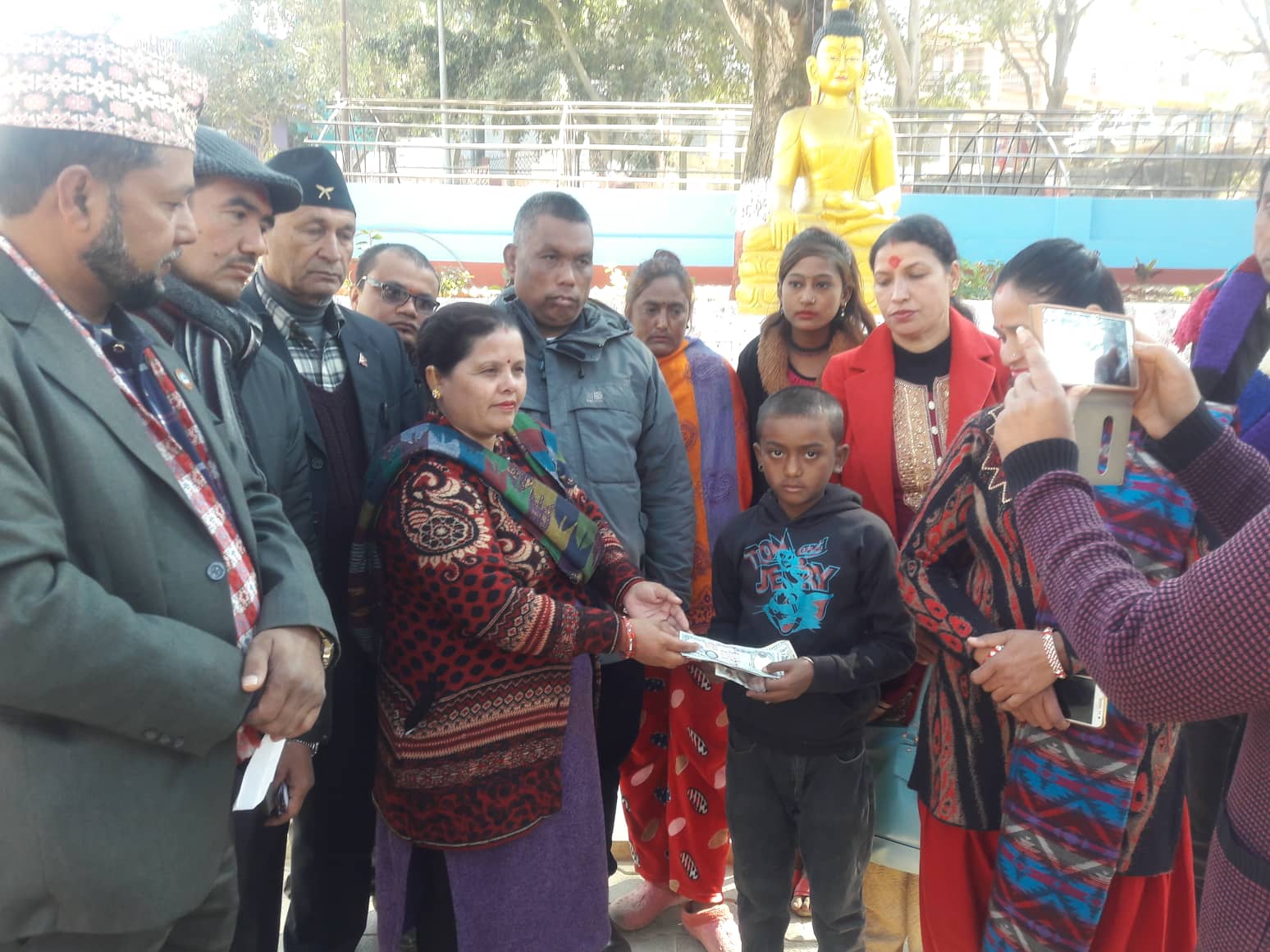 यस्तै अर्जुन बि. क बचाउ अभियानको लागि चेत बहादुर बिस्ट बिन्दुकला बिस्टबाट ७ हजार र कल्याणी सेवा नेपाल सन्धिखर्कबाट ३ हजार रुपैया सहयोग रकम हस्तान्तरण गरिएको छ ।