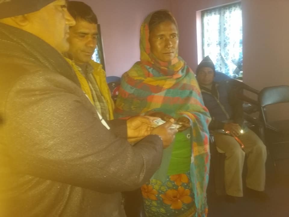 मालारानी गाउँपालिका वडा न. ६ का वडा अध्यक्ष नारायण अर्याल ,पत्रकार महासघ ५ न. प्रदेश सदस्य अशोक खनाल , पत्रकारहरु बिरेन्द्र के सि, नवीन के सि आर्थिकसामाजिक अभियन्ता भोजबहादुर रोक्का लगायतले उक्त रकम निजको आमा मन कुमारी बि.क.लागि हस्तान्तरण गरिएको हो ।