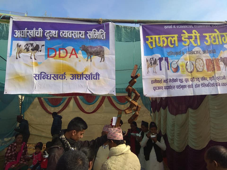बिगतका वर्षहरुमा जस्तै याे वर्ष पनि बागि खाेला र भद्रि खाेलाकाे संगम स्थल त्रिवेणीधाममा जिल्ला स्तरिय बृहत् कृषि तथा पशु पर्दशनिमा विभिन्न जातका पशु, माैसमि तथा वेमाैसमि तरकारिहरू, फलफुलहरु, अचार अाइटम, ढाका कपडाका अाइटमहरू, बासका अाक्रशक डिजाइनका सामानहरु लगायत सम्पुर्ण मेलाकाे अवलाेकन गर्दै सन्धिखर्क नगरपालिकाका नगर प्रमुख कमल प्रसाद भुसाल, उपप्रमुख ठाकुर कुमार विक, घरेलु तथा साना उद्योग विकास समितिका प्रमुख कमल कार्कि लगायतले बृहत् प्रदर्शनि अवलाेकन गर्नुभएको थियाे ।