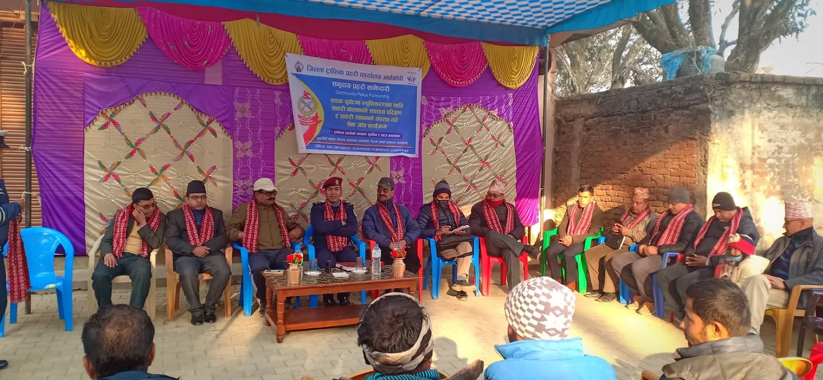 समुदाय- प्रहरी साझेदारी कार्यक्रम अन्तर्गत जिल्ला ट्राफिक प्रहरी कार्यालय अर्घाखाँचीको आयोजना तथा जिल्ला प्रहरी कार्यालय अर्घाखाँचीको सहआयोजनामा सम्पन्न कार्यक्रममा प्रमुख अतिथी सन्धिखर्क नगरपालीकाका प्रमुख़ (मेयर) कमल प्रसाद भुसाल, प्रमुख प्र.ना.उ.नवराज मल्लको अध्यक्षता, विशेष अतिथी निमित्त प्रमुख जिल्ला अधिकारी विष्णुराज वेल्वासे लगायतको उपस्थिती रहेको थियो ।