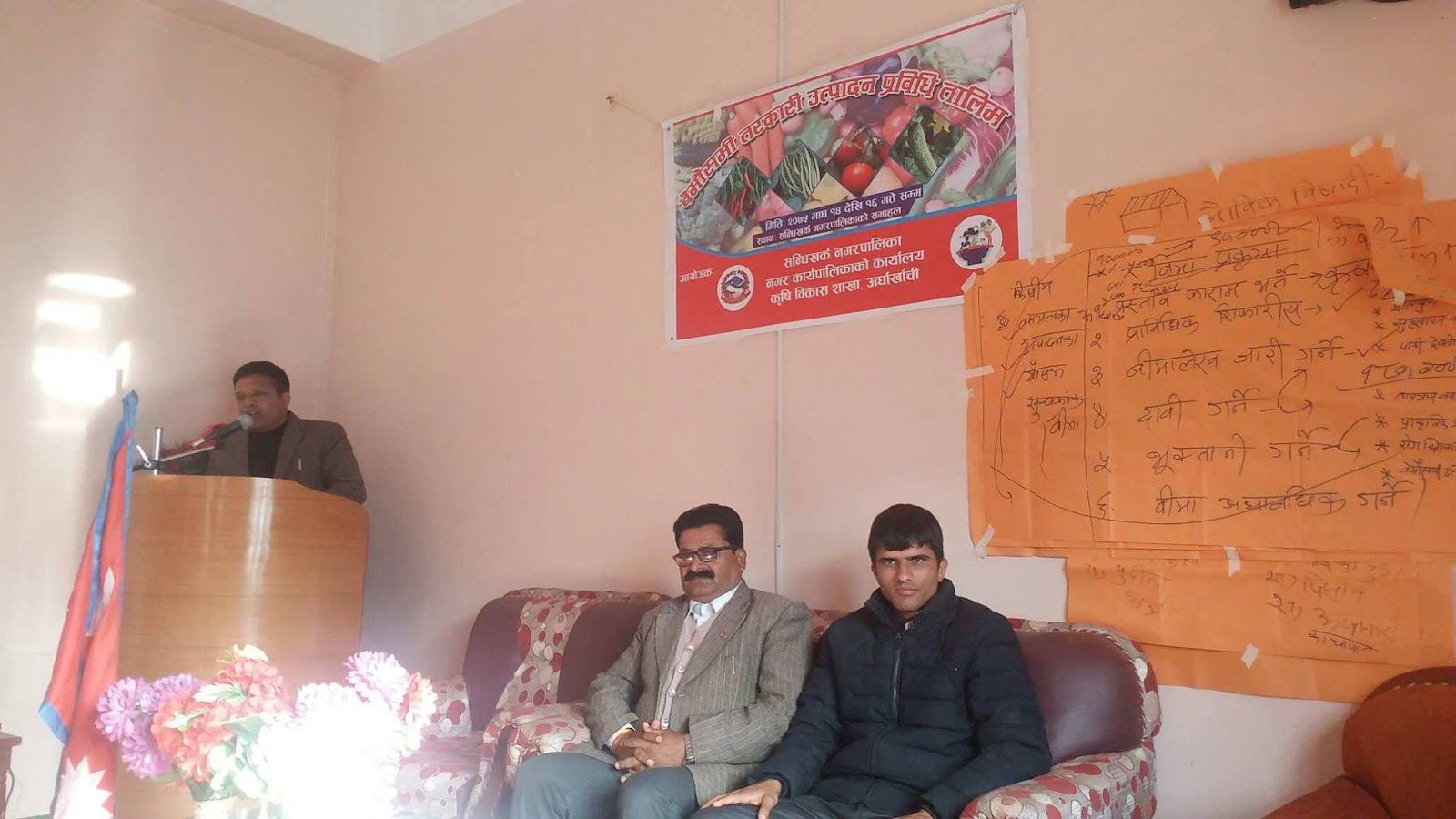 नगरप्रमुख भुसालले सन्धिखर्क नगरलाई तरकारीमा आत्मनिर्भर बनाउन तालिमले महत्वपूर्ण भूमिका खेल्ने मा जोड दिदै कृर्षक हरुलाई अात्म निर्भर हुने खालका तालिम लाई पहिलो प्राथमिकता दिने बताउनु भयो । उहाले वास्तविक कृषकहरुलाई प्रोत्साहन गर्न कार्यालयले कुनै कसुर बाँकी नराख्ने दाबि गर्नु भयो ।