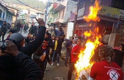 अर्घाखाँचीमा नेविसंघद्धारा प्रधानमन्त्री ओलीको पुत्ला दहन (भिडियो तस्बिर सहित)