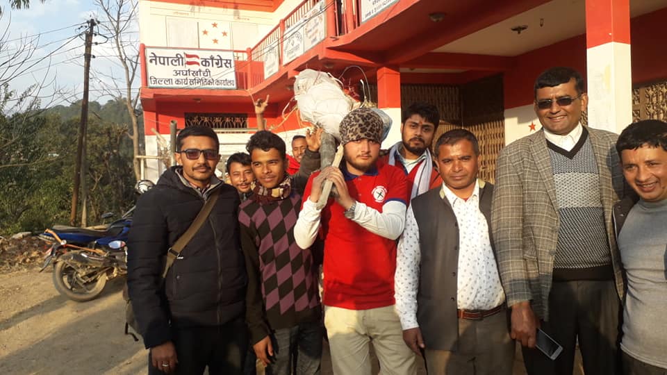 सन्धिखर्कको विपि स्मृति भवनबाट नारावाजी र संख बजाउदै निकालिएको पुत्लालाइ सन्धिखर्कका विभिन्न भाग परिक्रमा गर्दै शान्ती बगैचा चोकमा लगर पुत्ला दहन गरेको हो । पुत्ला दहन गरेपछि प्रहरीले धरकपट गरेर पुत्ला निभाएको थियो । केहि बेर प्रहरी र नेविसंघका कार्यक्रताहरु विच घचेटाघचेट र पेलापेल समेत भएको थियो ।