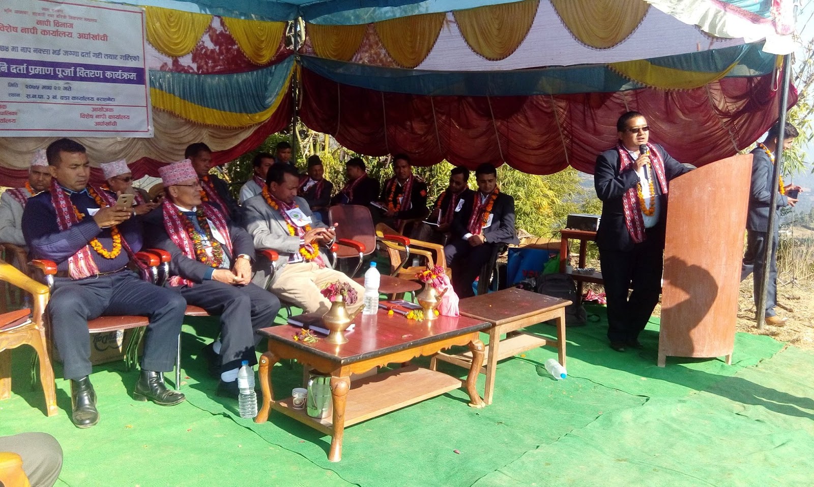 लालपुर्जा वितरण कार्यक्रममा सन्धिखर्क नगरपालिका उपप्रमुख ठाकुर कुमार विक, वार्ड  नम्बर १ अध्यक्ष  युवराज बन्जाडे २ का अध्यक्ष मोतिजग रायमाझी  ५ का अध्यक्ष राजेन्द्र भुसाल मालपोत अधिकृत रुकेन्द पालुङे, प्रमुख जिल्ला अधिकारी प्रेम लामिछाने, नेपाली काँग्रेसका कृष्ण खनाल, नेकपाका श्रीकृष्ण भुसाल, राष्ट्रिय जनमोर्चाका गोविन्द विसी, विवेकशिल साझा पार्टीका हरिप्रसाद भुसाल, नयाँ शक्ती नेपालका राजु नेपाली, राप्रपाका शम्सीदिन मियाँ लगायतले मन्तव्य राखेका थिए ।