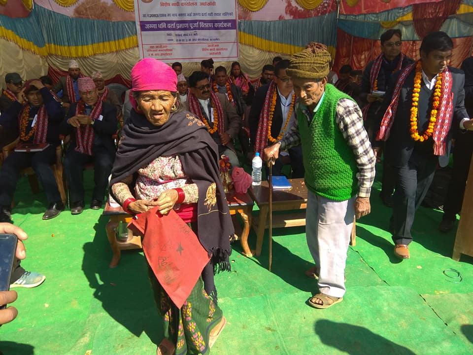 १६ बर्ष पछि जग्गा धनी पुर्जा पाएपछि खुशी हुँदै टान बहादुर खड्का ,(८२)मेहरर्सिंह खड्का (८६) ।