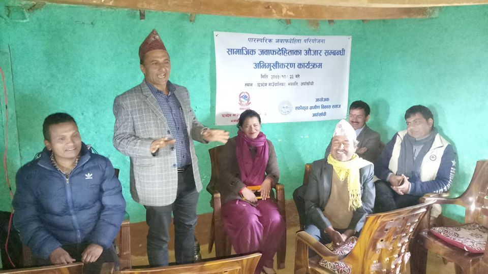 एकीकृत ग्रामीण विकास समाज अर्घाखाँचीको आयोजना तथा वडा कार्यालयको समन्वयमा पारष्परिक जवापफदेहिता परियोजना अन्र्तगत भएको सामाजिक जवाफदेहिताका औजार सम्बन्धी अभिमुखीकरण कार्यक्रममा गाउँपालिकालाई सुशासन नीति बनाएर सामाजिक जवाफदेहिताका औजारहरु सामाजिक परीक्षण, सार्वजनिक सुनुवाई, सार्वजनिक परीक्षण लगायतका औजारहरुको प्रयोगमा ध्यानाकर्षण गराउने निर्णय भएको छ । त्यस्तै निर्माण व्यवसायी मार्फत सम्पन्न हुने हरेक योजनामा उपभोत्ता समिति र वडा कार्यालयको सिफारिसमा मात्र सम्पन्न गर्ने व्यवस्था मिलाउन गाउँपालिकामा अनुरोध गर्ने निर्णय भएको हो ।