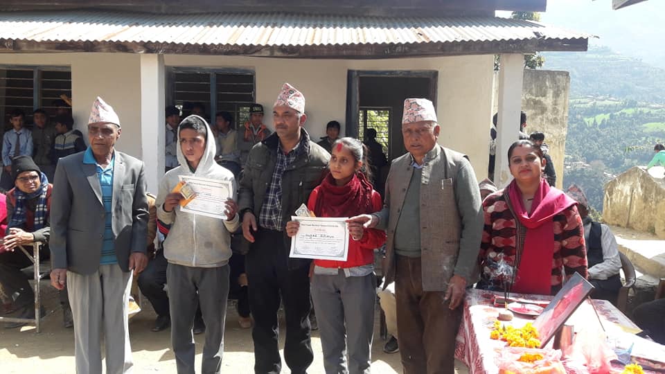 ढिकुरा पेंहाले निबासि स्वर्गीय खिम प्रसाद भट्टराई को पुण्यतिथिको अबसर पारेर बिगत बर्ष हरुमा जस्तै यसपटक पनि छोरा डा.धुर्ब भट्टराई द्वारा प्रदान गर्दै अाउनु भएको दुई जना असहाय जेहेन्दार बिधार्थि हरुलाई उनिहरुको उज्वल भबिश्यको कामना गर्दै शारदा उच्च माध्यमिक ढिकुरामा ढिकुरा नमुना परिसद र शारदा उच्च माबिको पहलमा छात्रवृत्ति बितरण कार्यक्रम सम्पन्न भएको हो ।