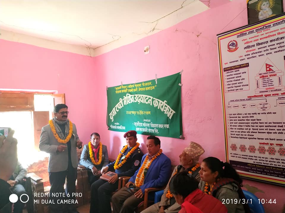 सुर्योदय महिला बिकास बचत तथा ऋण सहकारी सस्थाको अायोजना सन्धिखर्क नगरपालिकाको अार्थिक सहयोग मा सुरु भएको एक हप्ते तालिमको उदघाटन गर्दै नगरप्रमुख भुसालले     तालिम मा सिकेका कुराहरु गाउमा लगेर ब्याभारमा उतारि दक्ष उधोगि बनेर रोजगारी मुलक ब्यबसाय सन्चालन गर्न अाग्रह गर्नु भयो ।