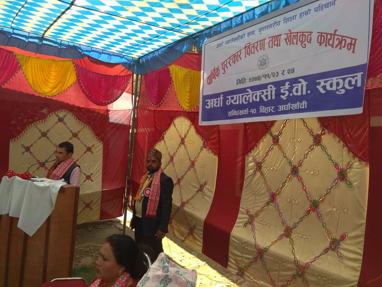 बिहार, अर्घाखाँची फागुन २४  – अर्घा ग्यालेक्सीको सान, गुणस्तरीय शिक्षा हाम्रो अभियान, भन्ने नारा सहीत स्थापित सन्धिखर्क नगरपालीका १० बिहारमा अबस्थीत अर्घा ग्यालेक्सी ईङ्लिस बोर्डीङ्ग स्कुलले आज एक कार्यक्रमका बिच बार्षिक पुरस्कार बितरण तथा खेलकुद कार्यक्रम सम्पन्न गरेको छ ।