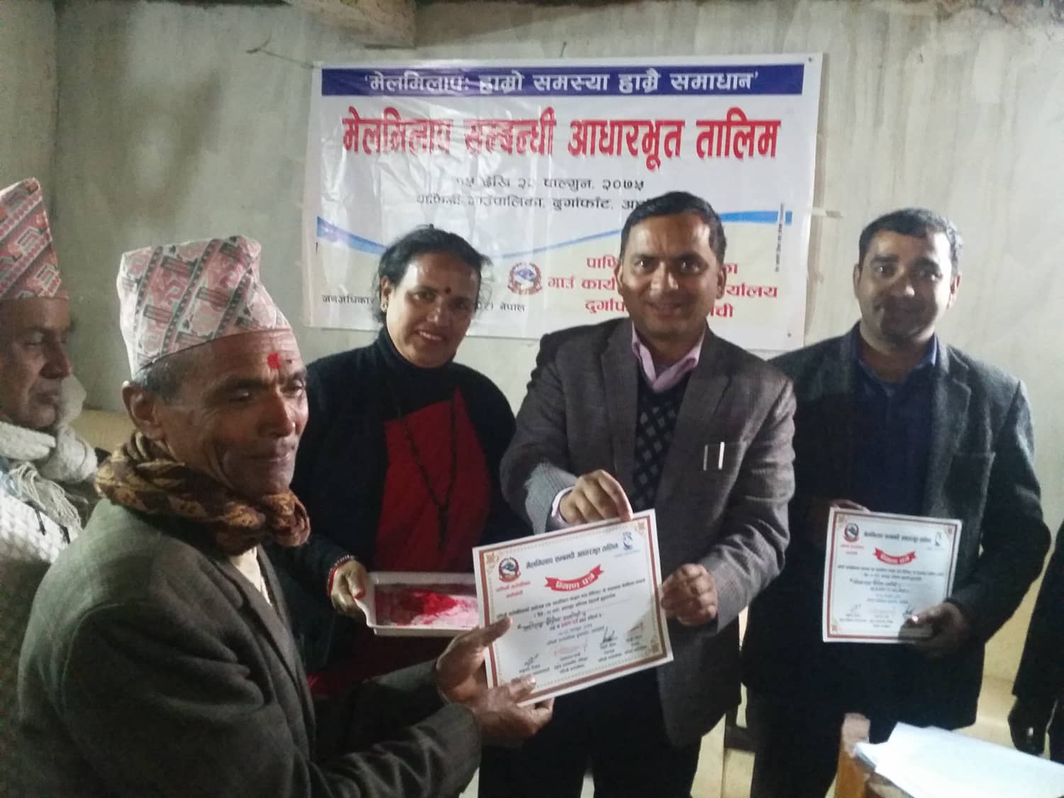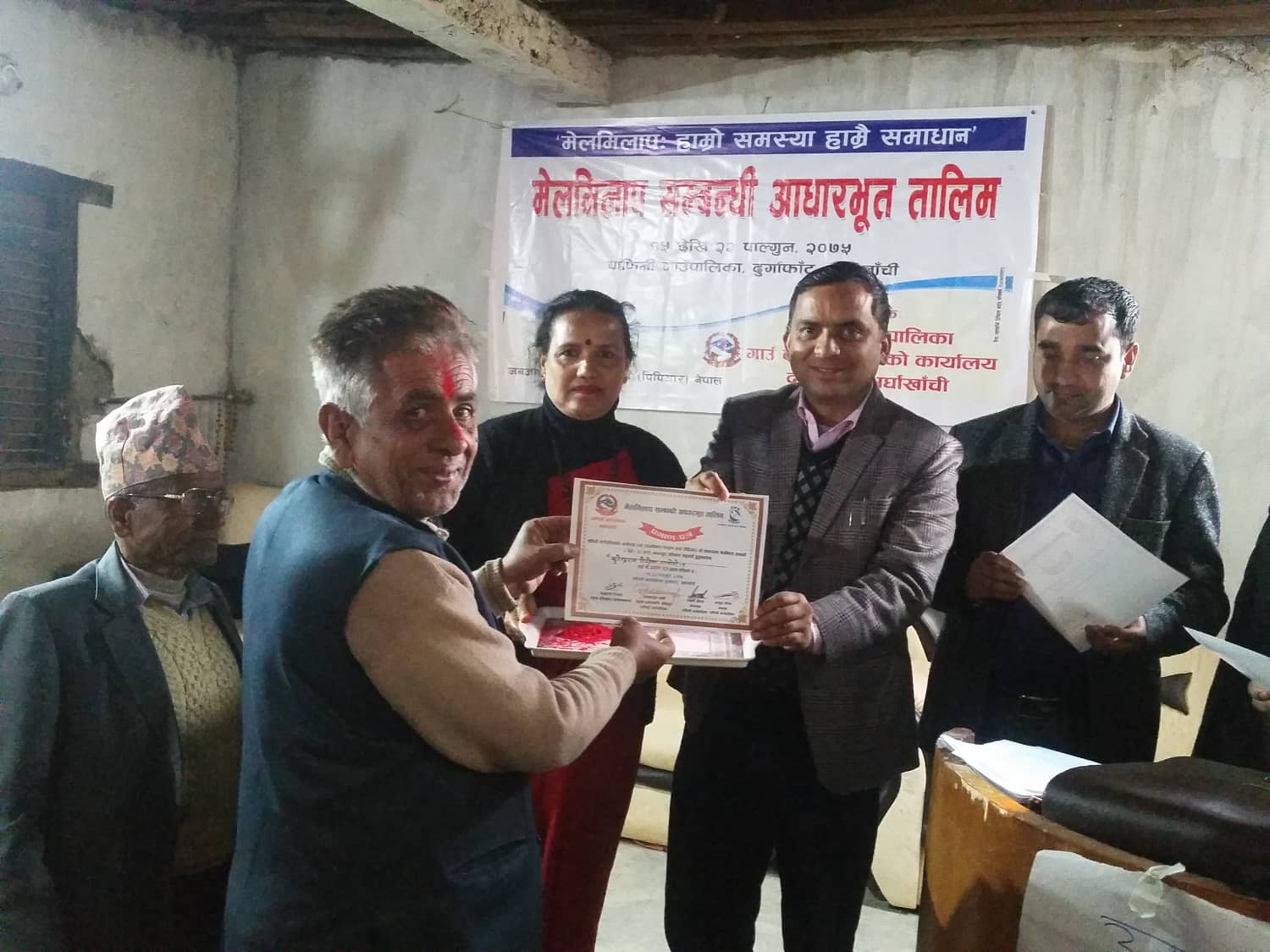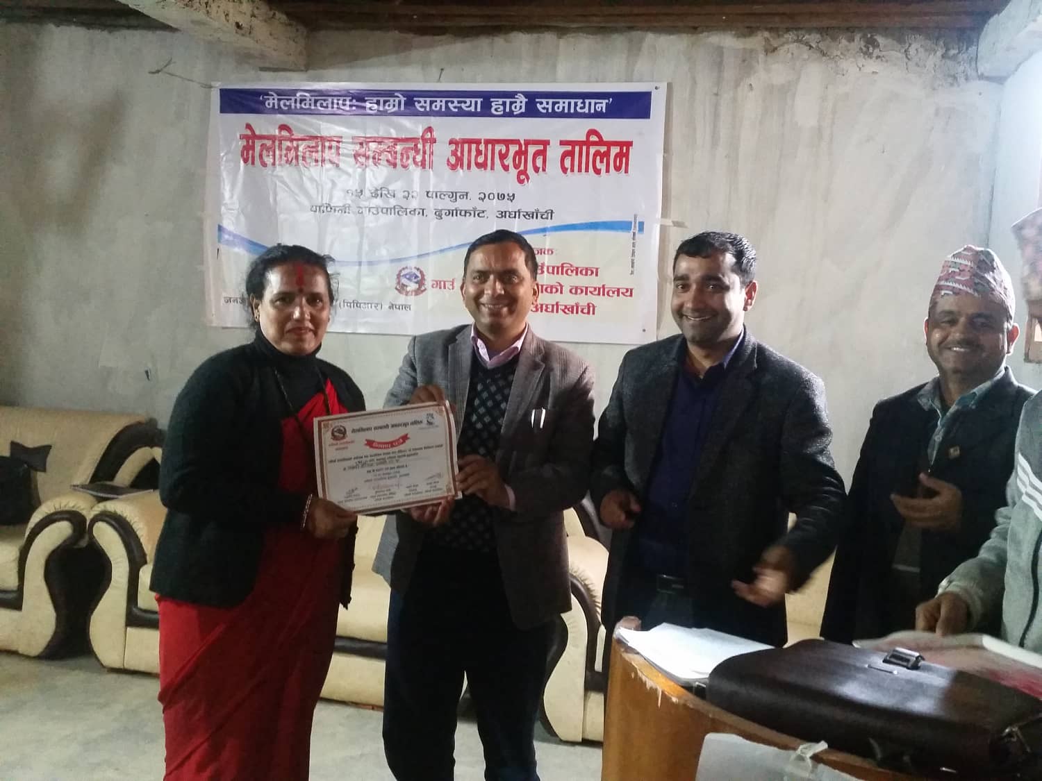 स्थानीय सरकारमा आउने मुद्धाहरुलाइ ग्रामीण तहमै मेलमिलापकर्ताको माध्यमबाट दुबै तर्फको जीत हुने गरि मेलमिलाप गराउनकालागि तालिमको आयोजना गरिएको गाँउ पालिकाका अध्यक्ष अच्युत गौतमले बताउनु भयो ।