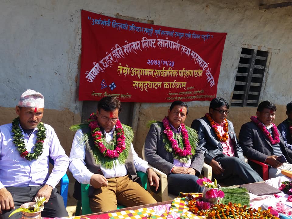अर्घाखाँची जिल्लाको शितगंगा नगरपालिका वार्ड नम्बर ९ सिद्धाराकाे लाैरीमा जौबारी, छहरे, लाैरी सोलार लिफ्ट खानेपानी तथा सरसफाई योजना उद्घाटन भएको छ ।