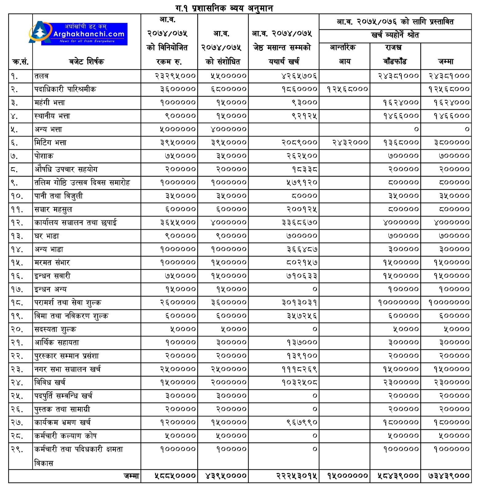 यस्तै आर्थिक वर्ष २०७५-७६ का लागि पनि स्रोत नखुलाई अनावश्यक बजेट विनियोजन गरिएको छ ।