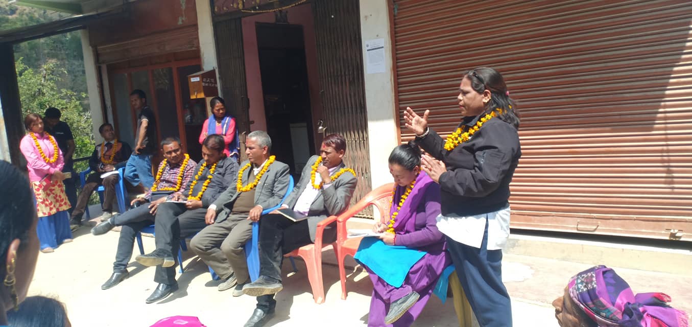 वडाअध्यक्ष धुब्रराज आचार्यको अध्यक्षता र महिला बिकास शाखाकी पुष्पा भुसालको सन्चालनमा सम्पन्न कार्यक्रममा महिला बिकास शाखाकी प्रमुख बेलकुमारी परीयार,पत्रकार श्याम घिमिरे,जितेन्द्र खत्रि,वडासचिब कुलदिप पोख्रेल र स्थानिय एकल महिलाको तर्फबाट पार्बता आचार्यले मनतब्य राख्दै एकल महिलाहरुलाई गरीएको सानो सहयोगले व्यवसायीक बन्न प्रेरणा मिलोस भन्दै शुभकामना ब्यक्त गर्नु भएको थियो ।