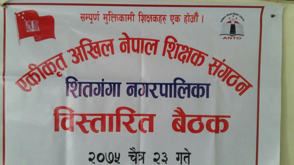 कार्यक्रम शिक्षक संगठनका टोमलाल आचार्यको अध्यक्षता, एकिकृत अखिल नेपाल शिक्षक संगठनका केन्द्रिय उपाध्यक्ष मान बहादुर पाण्डेको प्रमुख अतिथ्यता र एकिकृत अखिल नेपाल शिक्षक संगठन जिल्ला समन्वय समितीका अध्यक्ष युवराज भुसाल र नेकपाको शितगंगा नगर कमिटीका सचिव मणि अधिकारीको विशिष्ट अतिथ्यतामा कार्यक्रम सम्पन्न भएको थियो भने कार्यक्रमको सञ्चालन शिक्षक संगठनका सचिव केशव बेल्बासेले गर्नु भएकोे थियो ।