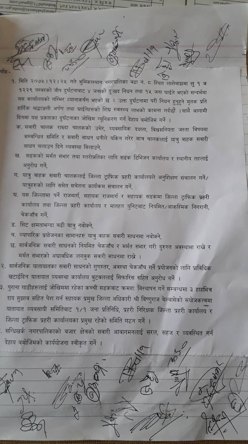 पुराना सवारी  साधनलाई कच्ची सडकबाट विस्थापन गर्न रायसुझाव सहित ३ हप्ताभित्र पेश गर्न सहायक प्रमुख जिल्ला अधिकारी बिष्णुराज बेल्वासेको संयोजकत्वमा समिति गठन समेत भएको छ ।
