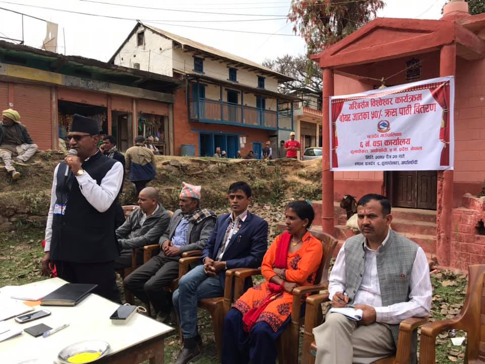 बाेयर क्रस जातका पाठी वितरण कार्यक्रममा गाउँपालिका प्रमुख लेखनाथ पोख्रेल लगायतको उपस्थिती रहेको थियो ।