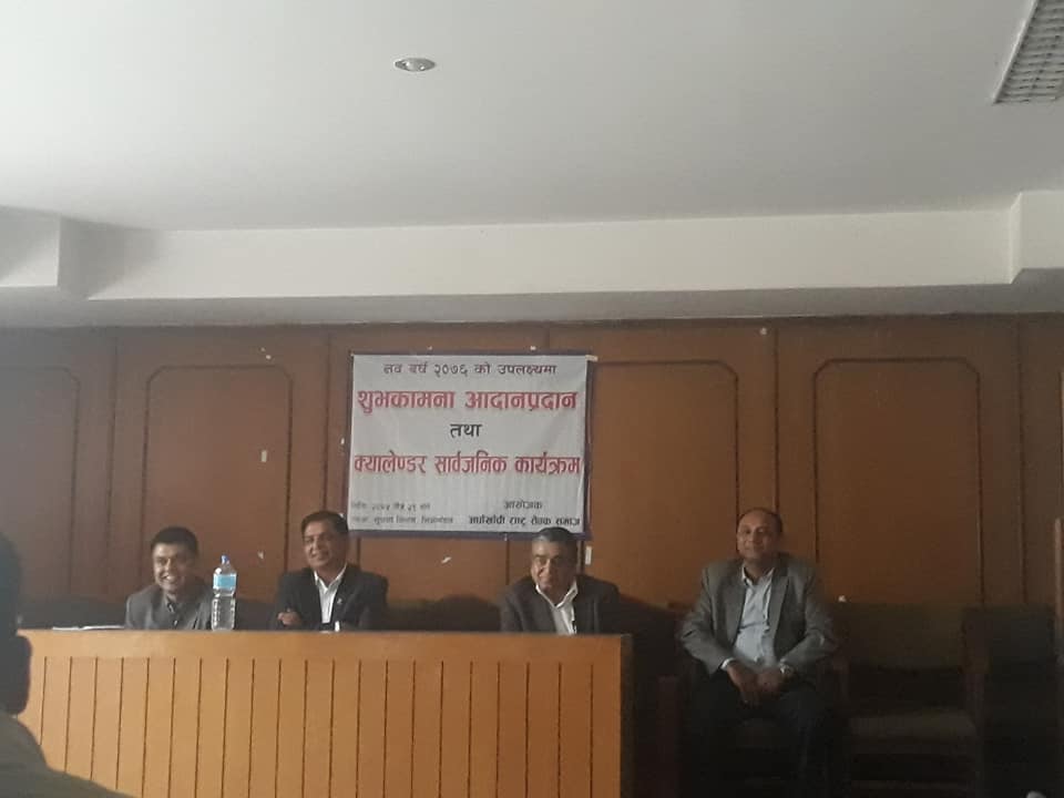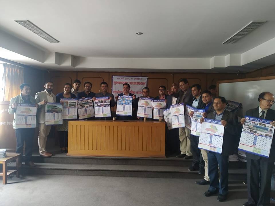 नयाँ वर्ष २०७६ काे शुभकामना आदानप्रदान र भित्ते क्यालेण्डर विमाेचन कार्यक्रम भाैतिक पुर्वाधार तथा यातायात ब्यबस्था मन्त्रालयका सचिब मधुसूदन अधिकारीकाे एवं संस्थाका अध्यक्षको उपस्थितिमा सम्पन्न भएको हो ।