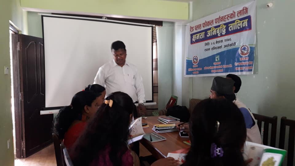जलवायु परिवर्तनले नेपालमा पारेकाे प्रभाव र यसको न्युनिकरण सम्बन्धी सराेकारवाला( रेड प्लस फाेकल पर्सन) का लागि तालिमकाे संचालन गरिएकाे हो ।