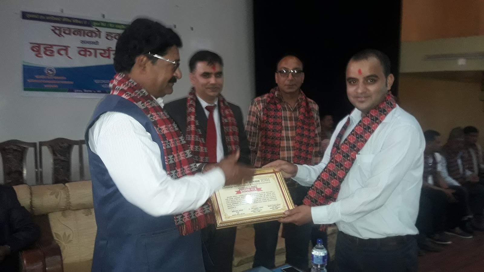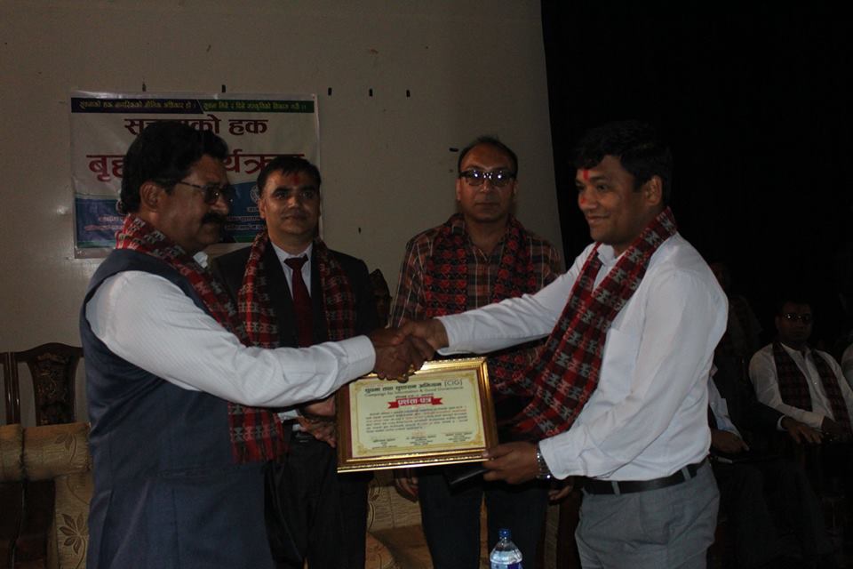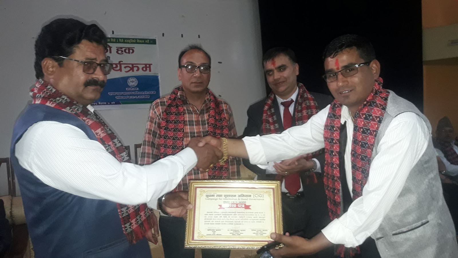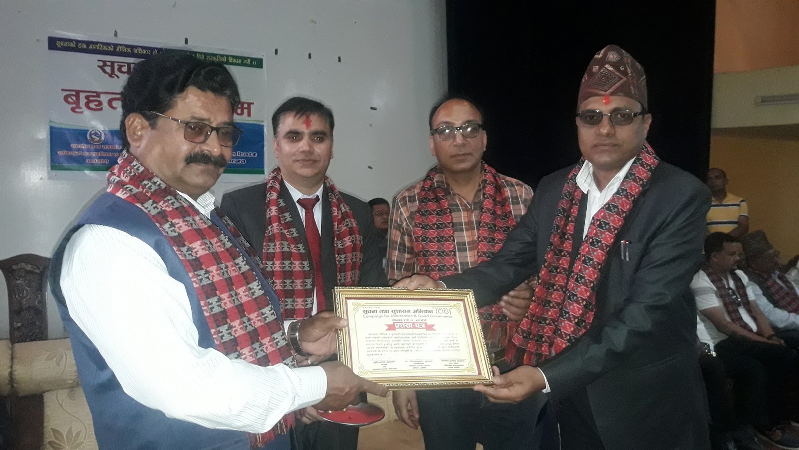 सूचनाकाे हक सम्बन्धि बृहत् कार्यक्रममा जिल्ला स्थित प्रमुख तथा प्रतिनिधीलाई सम्मानित गरेको थियो । सिआईजी अर्घाखाँचीको कार्यक्रममा हास्य कलाकार तथा सामाजिक अभियान्ता धुर्मुस सुन्तली फाउण्डेशन सिताराम कट्टेल धुर्मुसको उपस्थिती रहेको थियो ।