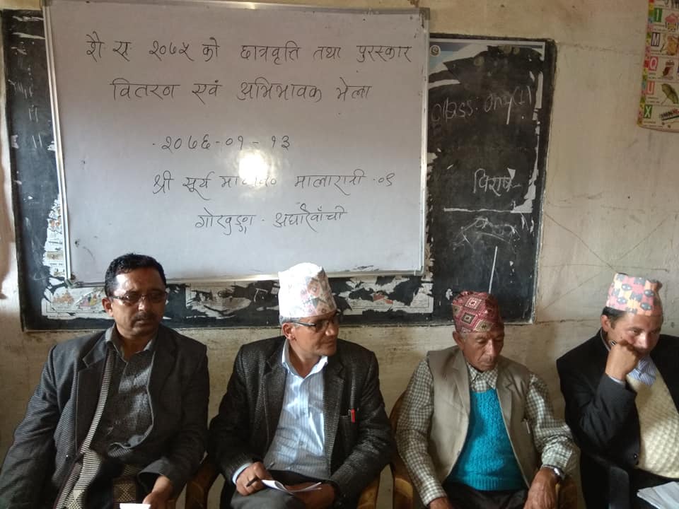 गोखुङ्गा, बैशाख १४ अर्घाखाँची – अर्घाखाँची जिल्लाको मालारानि गाउँपालिका वडानम्वर ९ गोखुङ्गामा रहेको सुर्य माध्यामिक विद्यालयमा शैक्षिक सत्र २०७५ को छात्रबृत्ति बितरण तथा अभिभाबक भेला सुक्रबार सम्पन्न भएको छ ।