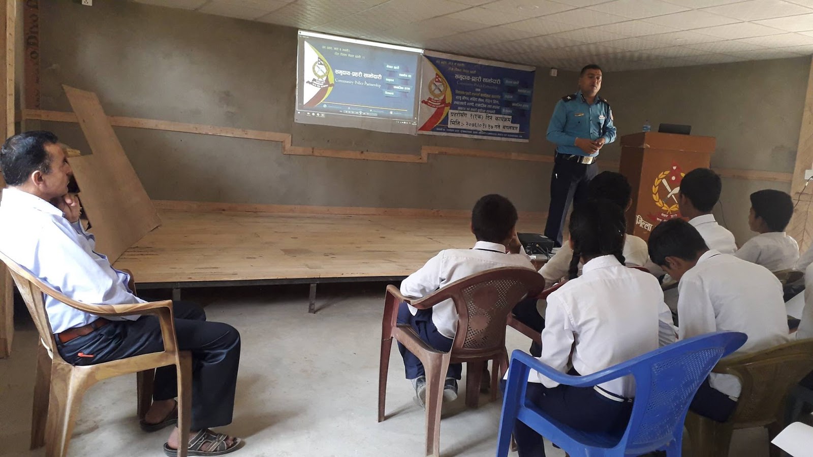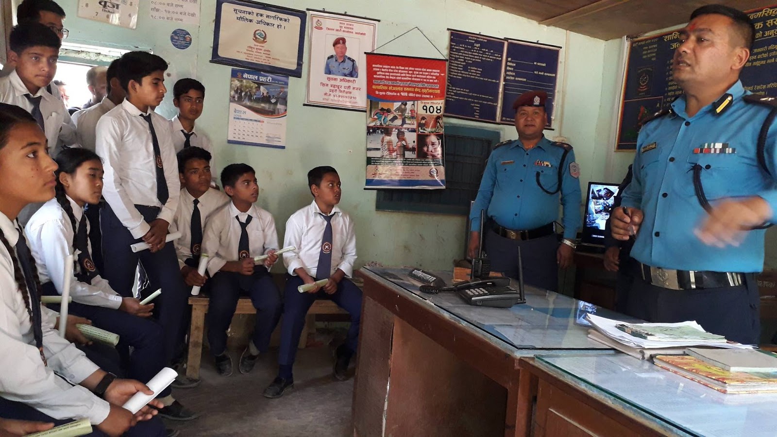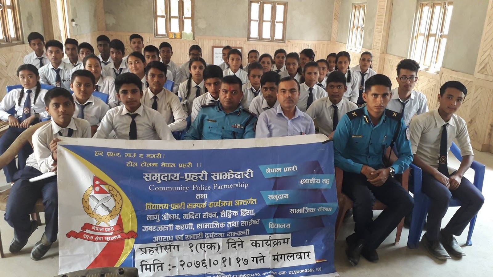 मंगलबार १०:३० बजे समुदाय-प्रहरी साझेदारी अवधारणा अनुसार प्रहरी-विद्यालय सम्पर्क कार्यक्रम अन्तर्गत भगवती मा.वि. शंखेटारीमा अध्ययनरत १८ जना छात्र र १८ जना छात्रा गरी ३६ जना बिद्यार्थीहरुलाई ‍जिल्ला प्रहरी कार्यालय अर्घाखाँचीमा “प्रहरी संग १ दिन “भ्रमण तथा सचेतनामुलक कार्यक्रम संचालन गरिएको हो ।