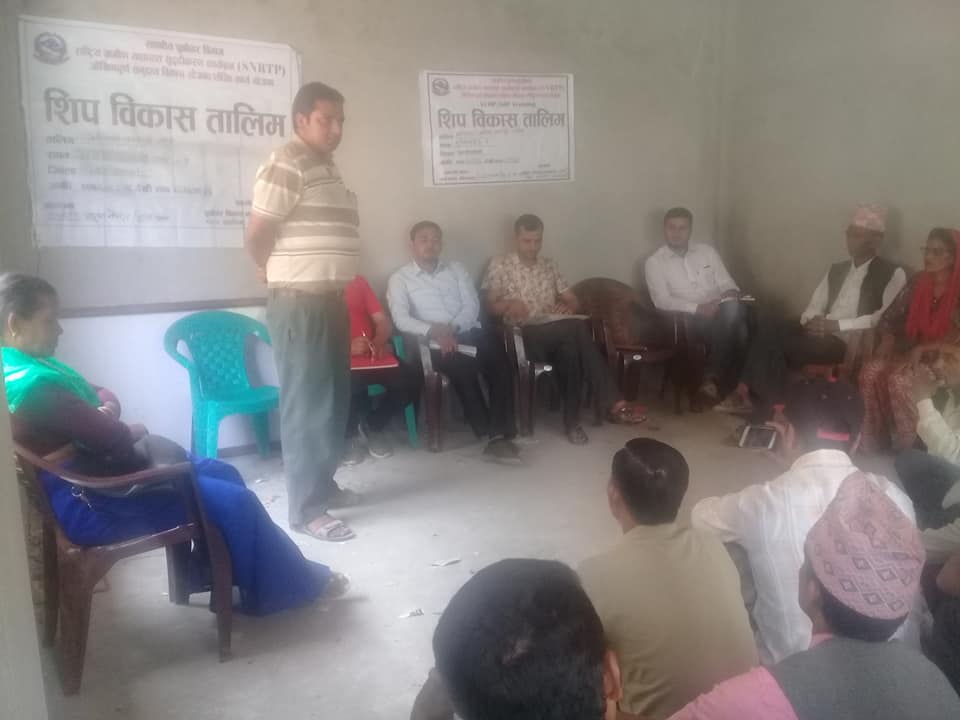 मंगलवार देखि भुमिकाकास्थान नगरपालिका वडा न १ ढाकाबाङको सिटेनीमा सुरुभएको सातदिने सीप बिकास तालिम मौरीपालन, बेमौसमी तरकारी खेती र झोला बुनाई तालिमको उदघाट्न गर्दै सो को कुरा बताउनुभएको हो सोही कार्यक्रमा मन्तव्य दिनेहरुमा एस एन आर टि पि का (SNRTP ) संयोजक उत्तम नेपाली ,बेमौसमी तरकारी खेतीका प्रशिक्षक दिपक आचार्य ,झोला बुनाइ प्रशिक्षक कालिकुमारी घर्ती ,पत्रकार माधव खनाल लगायतले मन्तव्य राख्नुभएको थियो ।