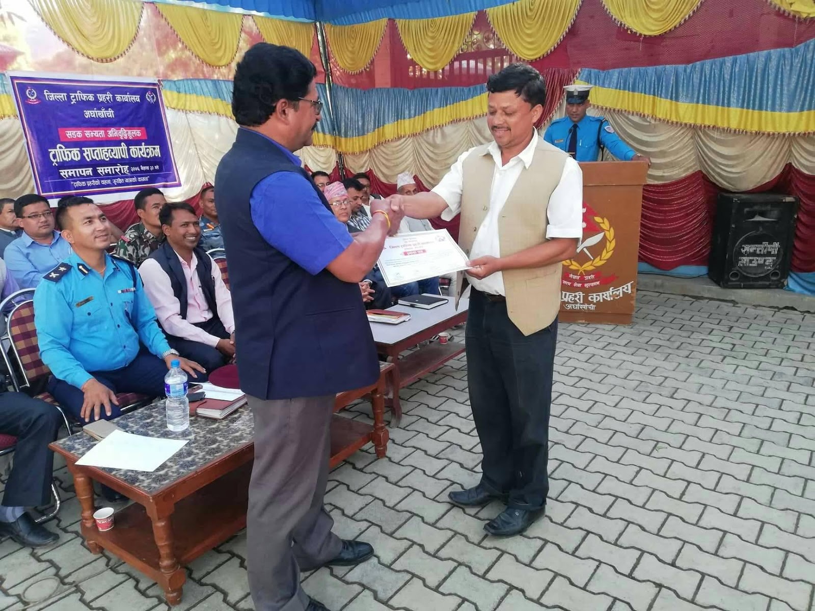 उक्त कार्यक्रममा बिभिन्न यातायात ब्यबसायी समितिका उकृष्ट सवारी चालकहरुलाई सम्मान पत्र प्रदान,बिभिन्न बिद्यालयबाट ट्राफिक स्वंयम सेबकको रुपमा खटिएका शिक्षक तथा बिद्यार्थीहरुलाई प्रशंसा पत्र प्रदान ,चालक सह-चालकहरुको स्वास्थ्य परीक्षण कार्यमा सहयोग गर्ने जिल्ला अस्पताल अर्घाखाँचीलाई प्रशंसा पत्र प्रदान गरिएको थियो ।