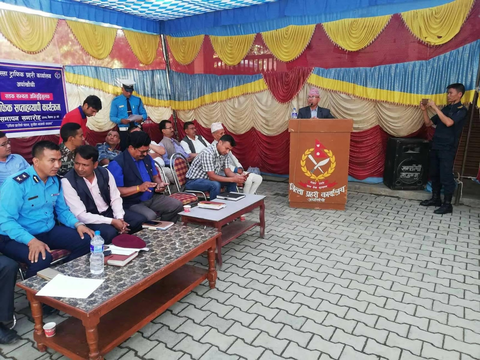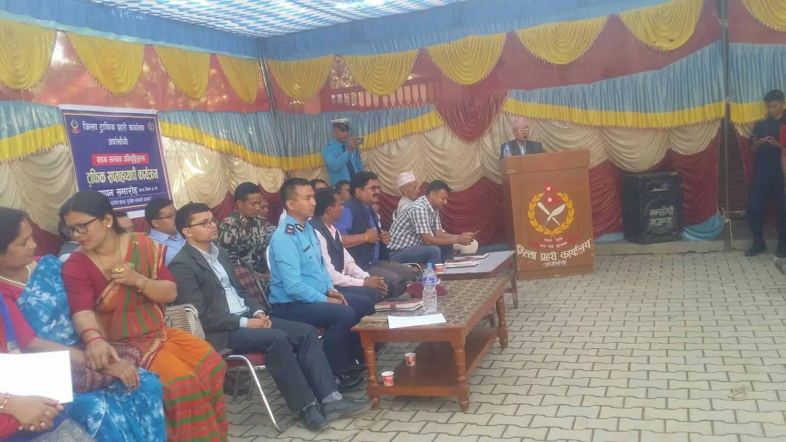 जिल्ला प्रशासन कार्यालय अर्घाखाँचीका प्रमुख जिल्ला अधिकारी प्रेमलाल लामिछानेको अध्यक्षतामा, सन्धिखर्क नगरपालिकाका नगर प्रमुख कमल प्रसाद भुसालको प्रमुख अतित्थ्यमा सम्पन्न कार्यक्रममा जिल्ला प्रहरी कार्यालय अर्घाखाँचीका कार्यालय प्रमुख प्रहरी नायव उपरीक्षक नवराज मल्ल, जिल्ला स्थित सम्पुर्ण सुरक्षा निकायका प्रमुख तथा प्रतिनिधहरु, जिल्ला स्थित सम्पुर्ण यातायात ब्यबसायी समितिका प्रतिनिधिहरु, बिभिन्न कल्वका प्रतिनिधिहरु, समाज सेवी, बुद्धीजिबी, पत्रकार, बिभिन्न स्कुलका बिद्यार्थी, शिक्षकहरु र अन्य सरोकार वाला निकायका प्रतिनिधिहरु लगायत उपस्थिति रहेको थियो ।