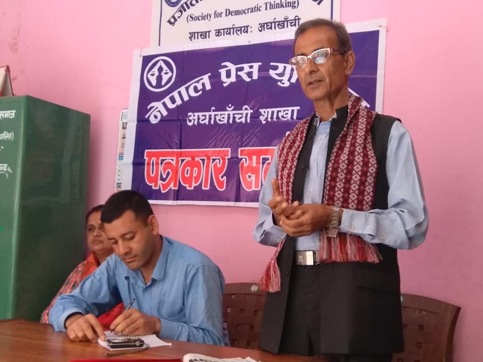 सन्धिखर्कमा प्रेस युनियन अर्घाखाँचीको पुर्व मन्त्री रेवती प्रसाद भुसालसँग पत्रकार सम्मेलन सम्पन्न