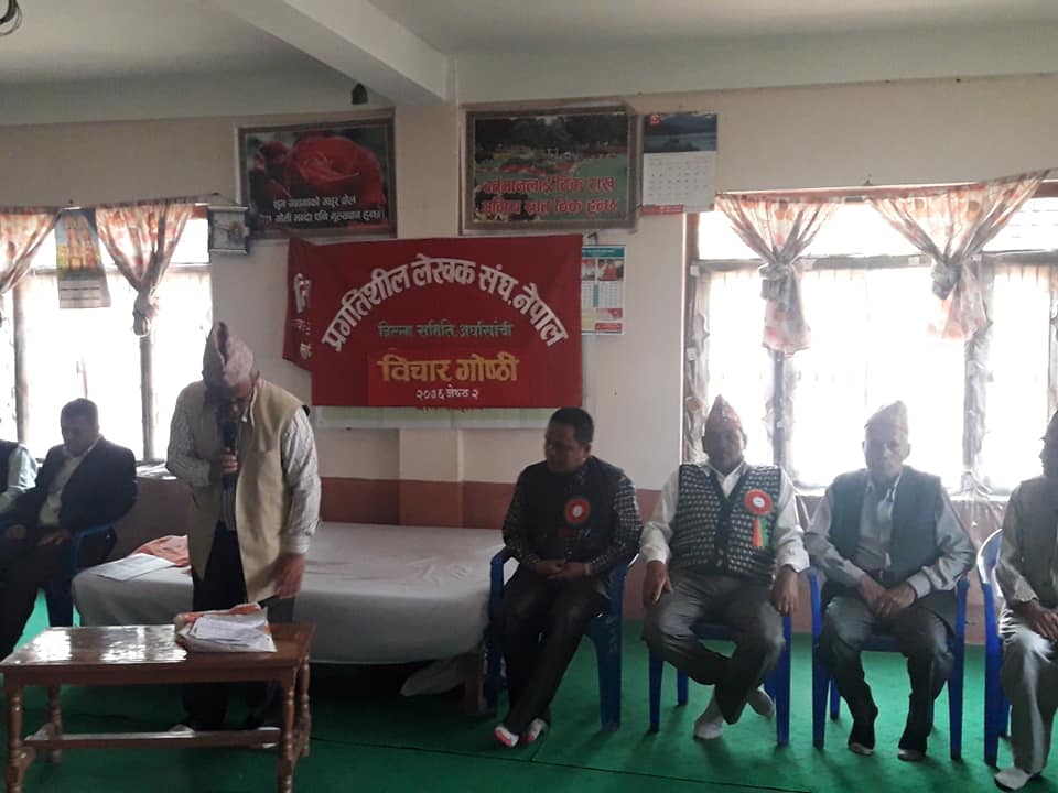 सन्धिखर्क, अर्घाखाँची । अर्घाखाँची जिल्लाको सन्धिखर्कमा प्रगतिशील लेखक संघ अर्घाखाँचीको आयोजनामा आज समाज रुपान्तरणमा प्रगतिशील साहित्यको भुमिका बिषयक बिचार गोष्ठी सम्पन्न भएको छ ।