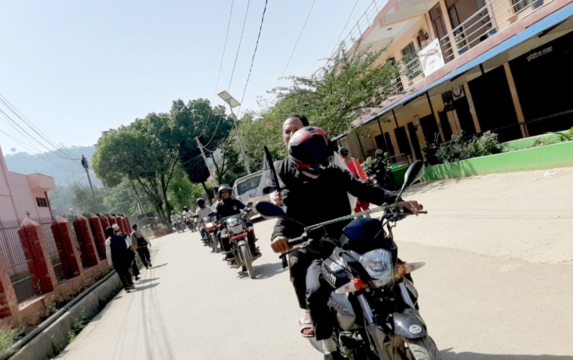 शान्ति बगैचाबाट सुरु भएको मोटरसाइकल -र्याली चुत्राबेसी बजार भक्तिटोला बसपार्क गुन्टिखोला स्याले बजार फुदवाङ हुदै पुन सन्धिखर्कमा आई कोणसभा सम्पन्न गरिएको छ ।