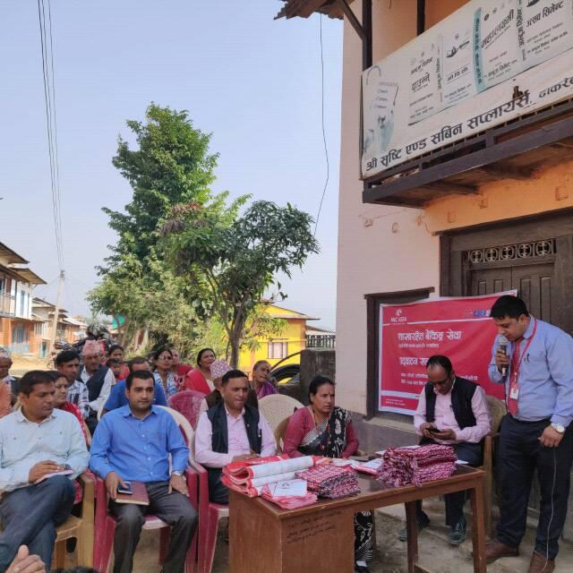 कार्यक्रम एनआईसी एसिया बैंक ५ नम्बर प्रदेशका उपप्रमुख राजन प्रसाद पोख्रेलको अध्यक्षता, एनआईसी अर्घाखाँची शाखा प्रमुख कृष्ण पौडेलको स्वागत र एनआईसी अर्घाखाँची शाखाका कृष्णप्रसाद भुसालको सञ्चालनमा सम्पन्न भएको थियो ।