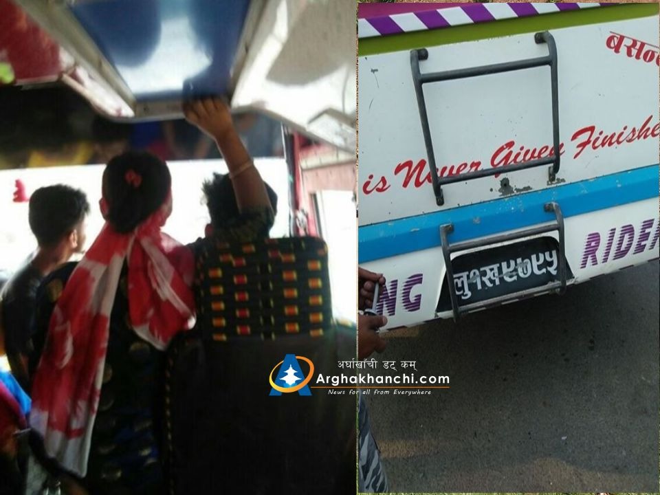 जेष्ठ १२ गते आईताबार दिउसो सन्धिखर्कबाट बुटवल जादै गरेको बसमा । तस्बिर: गोपाल थापा छेत्री, अर्घाखाँचीडट्कम