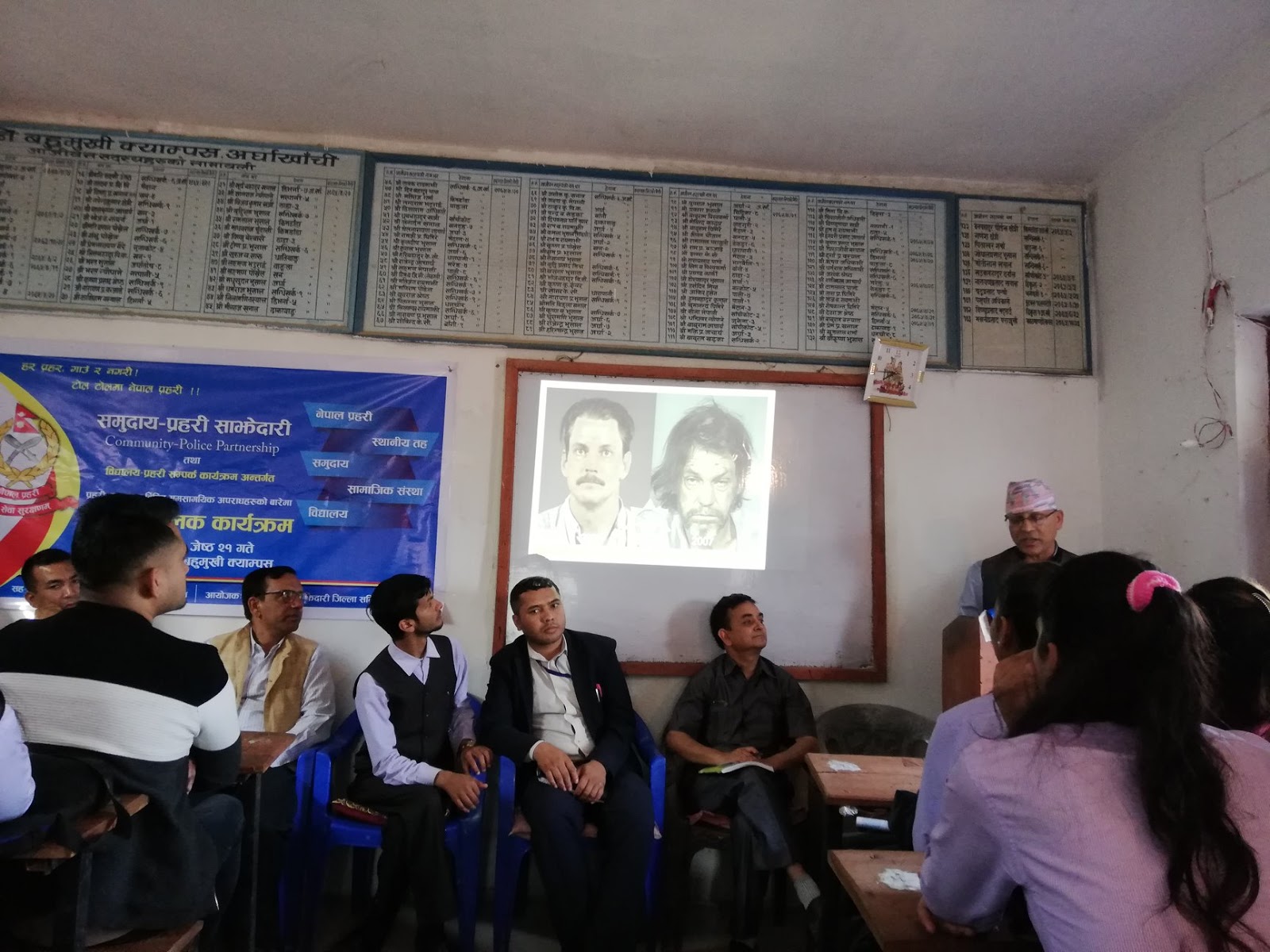 प्रशिक्षणमा प्रमुख जिल्ला अधिकारी श्री प्रेमलाल लामिछाने, जिल्ला प्रहरी कार्यालयका कार्यालय प्रमुख प्रहरी नायब उपरीक्षक नबराज मल्ल र प्रहरी सहायक निरीक्षक आषिश बिश्वकर्माले प्रशिक्षण दिनु भएको थियो ।