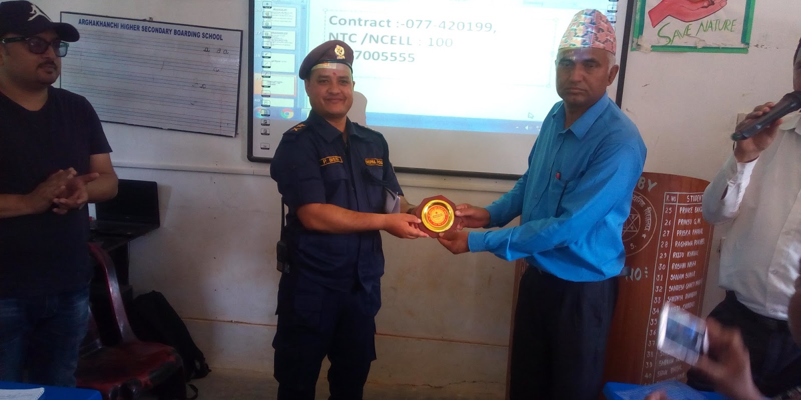 शनिबार अर्घाखाँची आवासिय बोर्डिङ स्कुल बेलबाटिका सन्धिखर्कमा जिल्ला रेडक्रस सर्कल अर्घाखाँची, अर्घाखाँची आवासिय बोर्डिङ स्कुल अर्घाखाँची, जिल्ला प्रशासन कार्यालय अर्घाखाँची तथा जिल्ला प्रहरी कार्यालय अर्घाखाँचीको सहकार्यमा “समुदाय-प्रहरी साझेदारी कार्यक्रम” अनुसार “बिद्यालय-प्रहरी सम्पर्क कार्यक्रम” सम्पन्न भएको हो ।