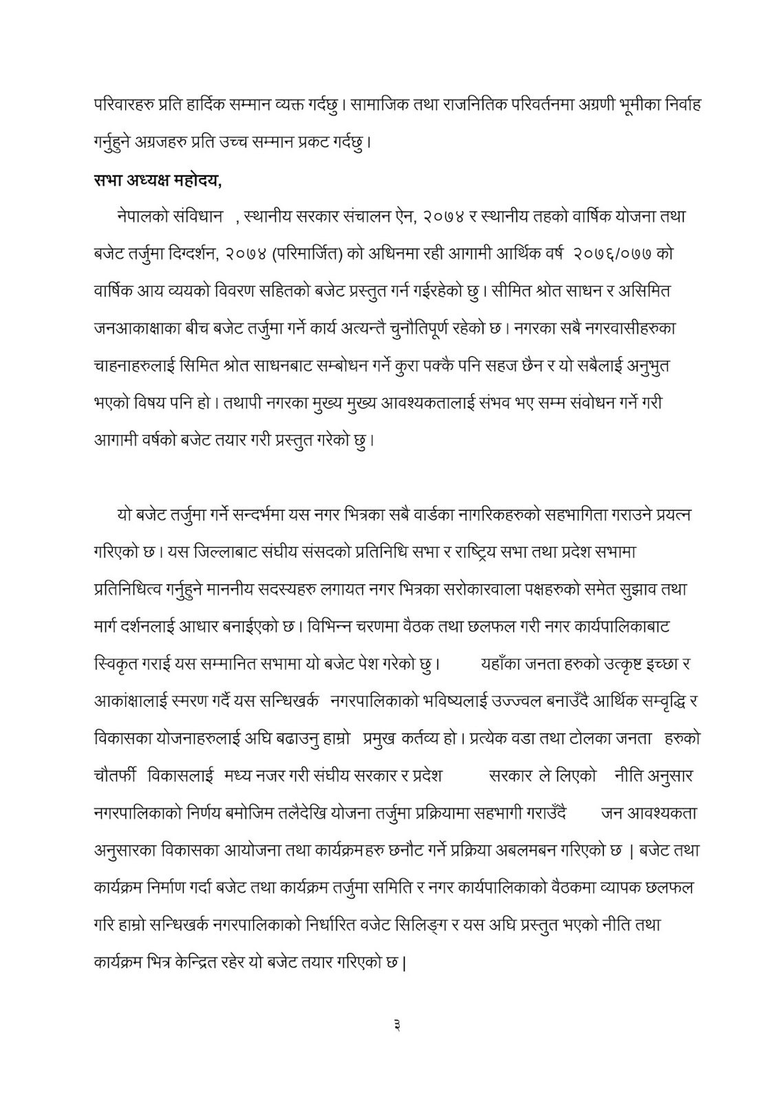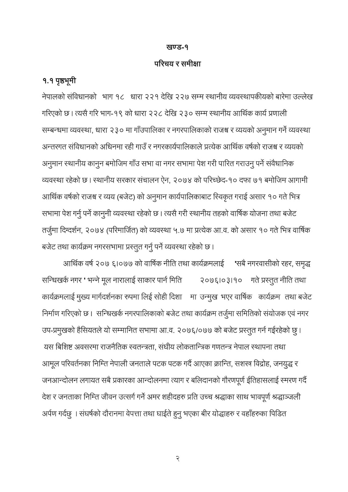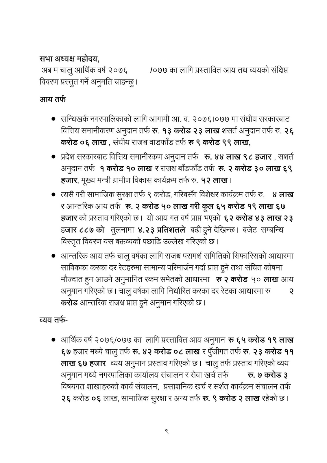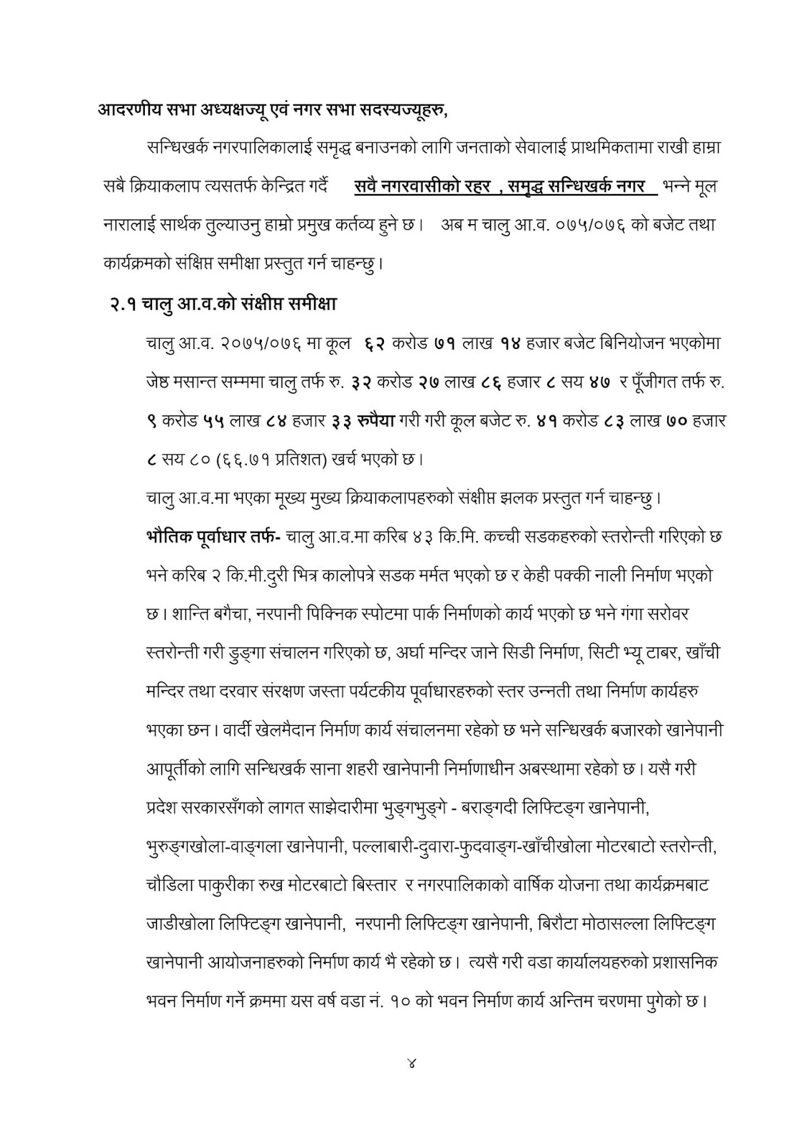 नगरप्रमुख कमल प्रसाद भुसालले पेश गर्नु भएको कार्यक्रम तथा बजेट:-