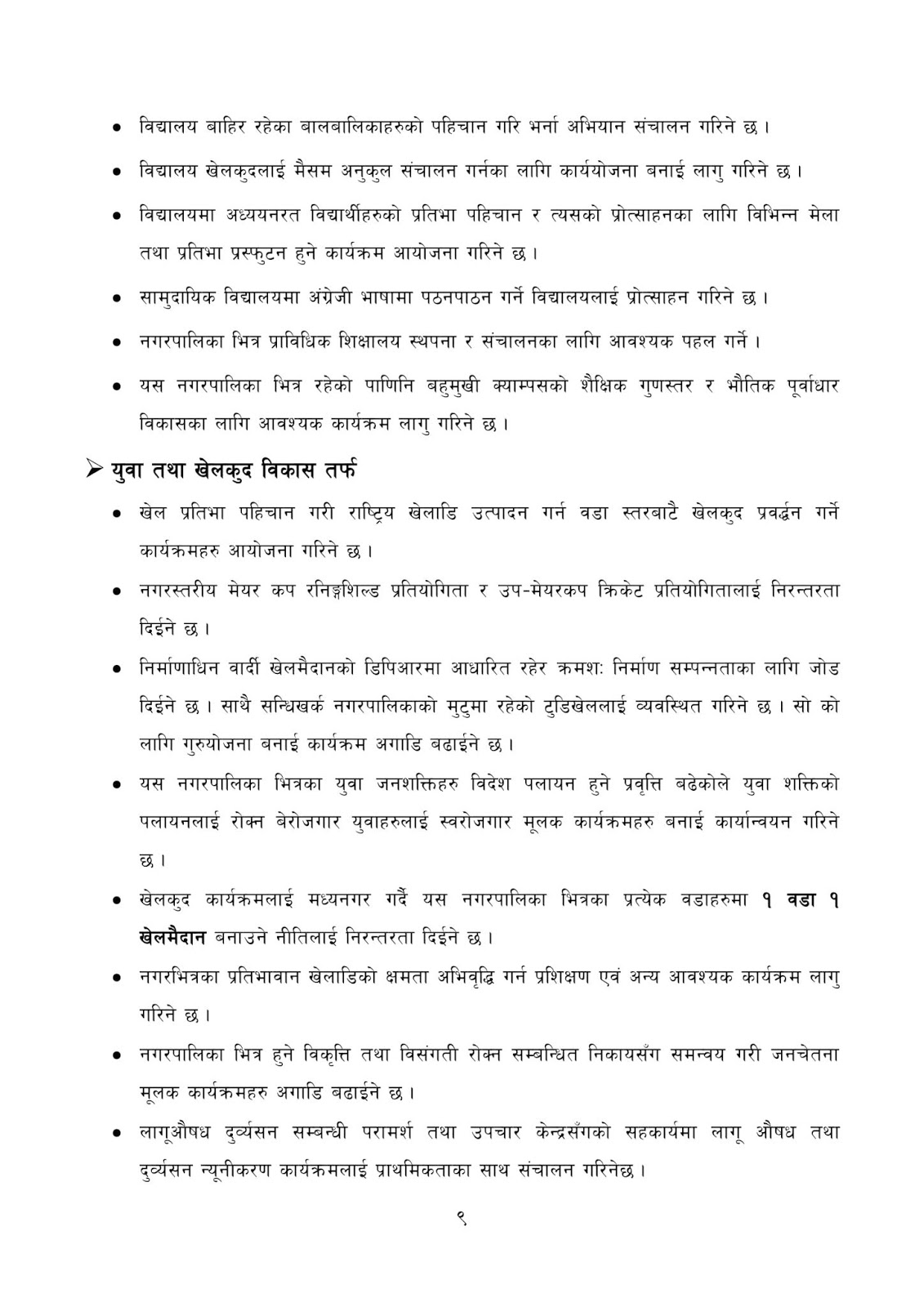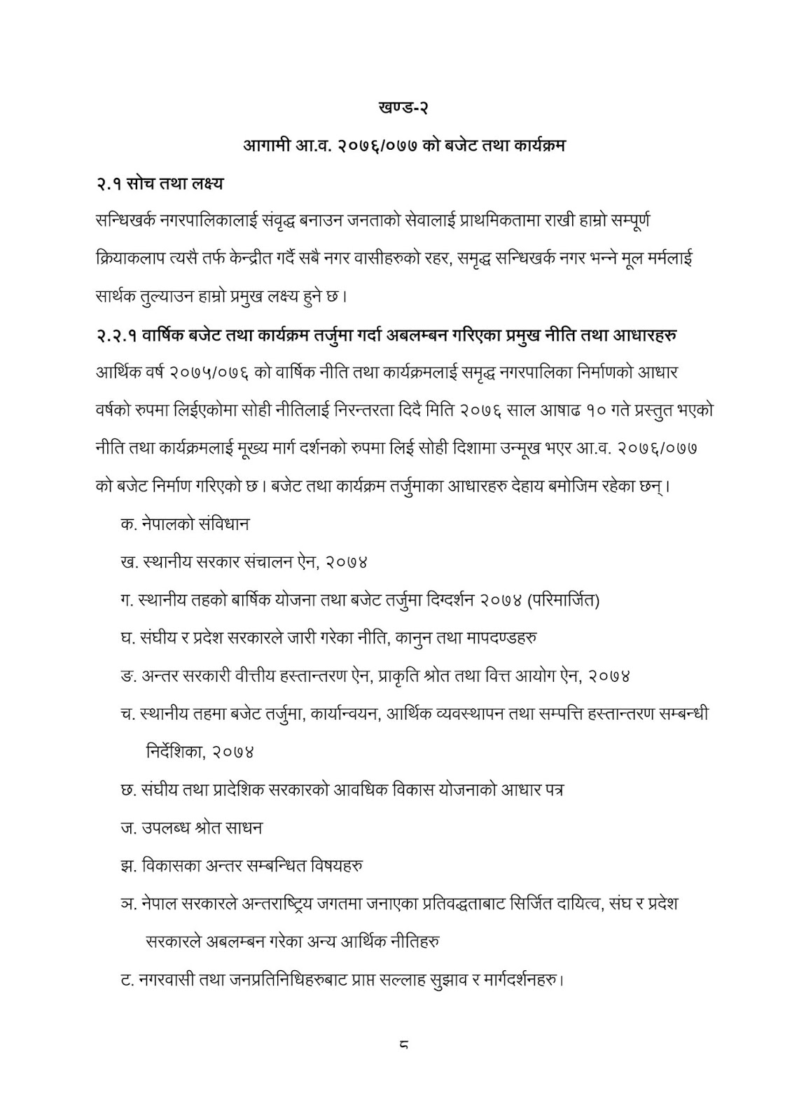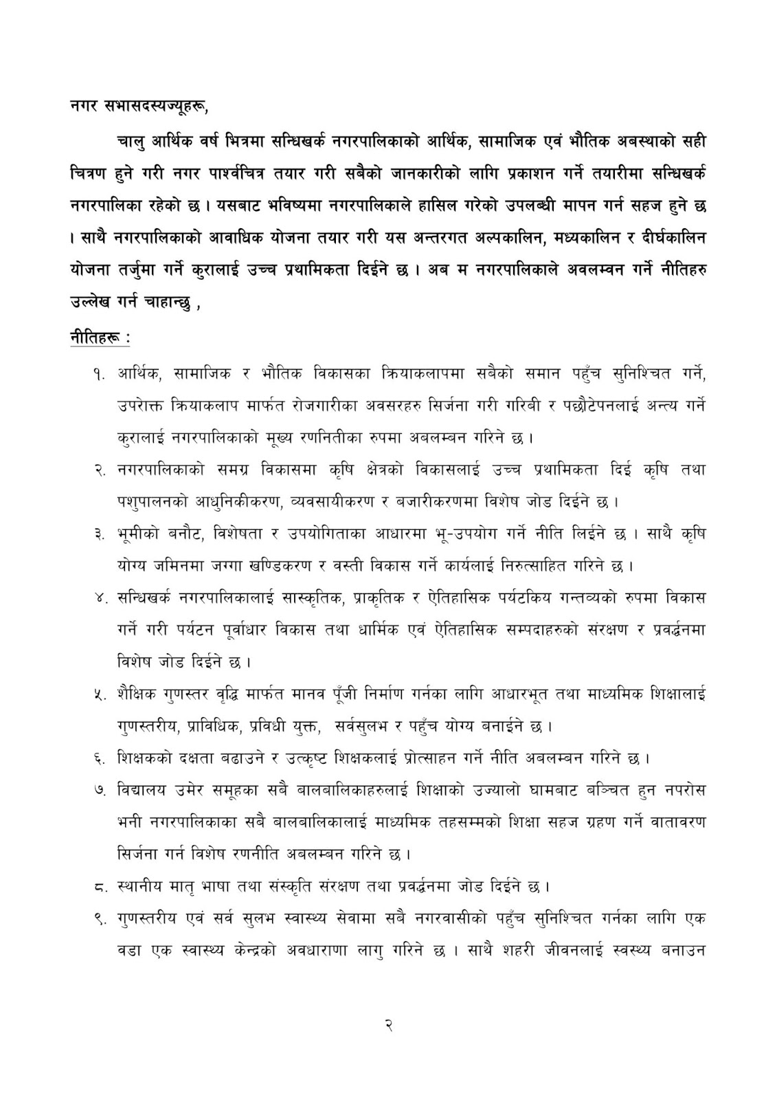 नगर उपप्रमुख ठाकुर कुमार विकले पेश गर्नुभएको निती तथा कार्यक्रमहरु