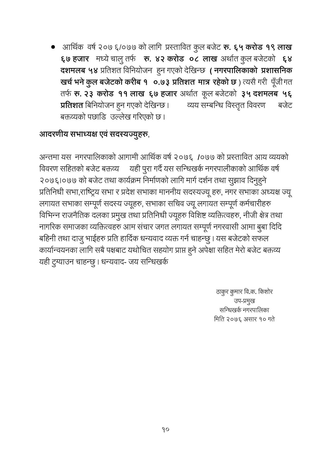 सन्धिखर्क नगरपालिकाले ६५ करोड १९ लाख ६७ हजार बजेट सार्वजनिक गरेको छ ।