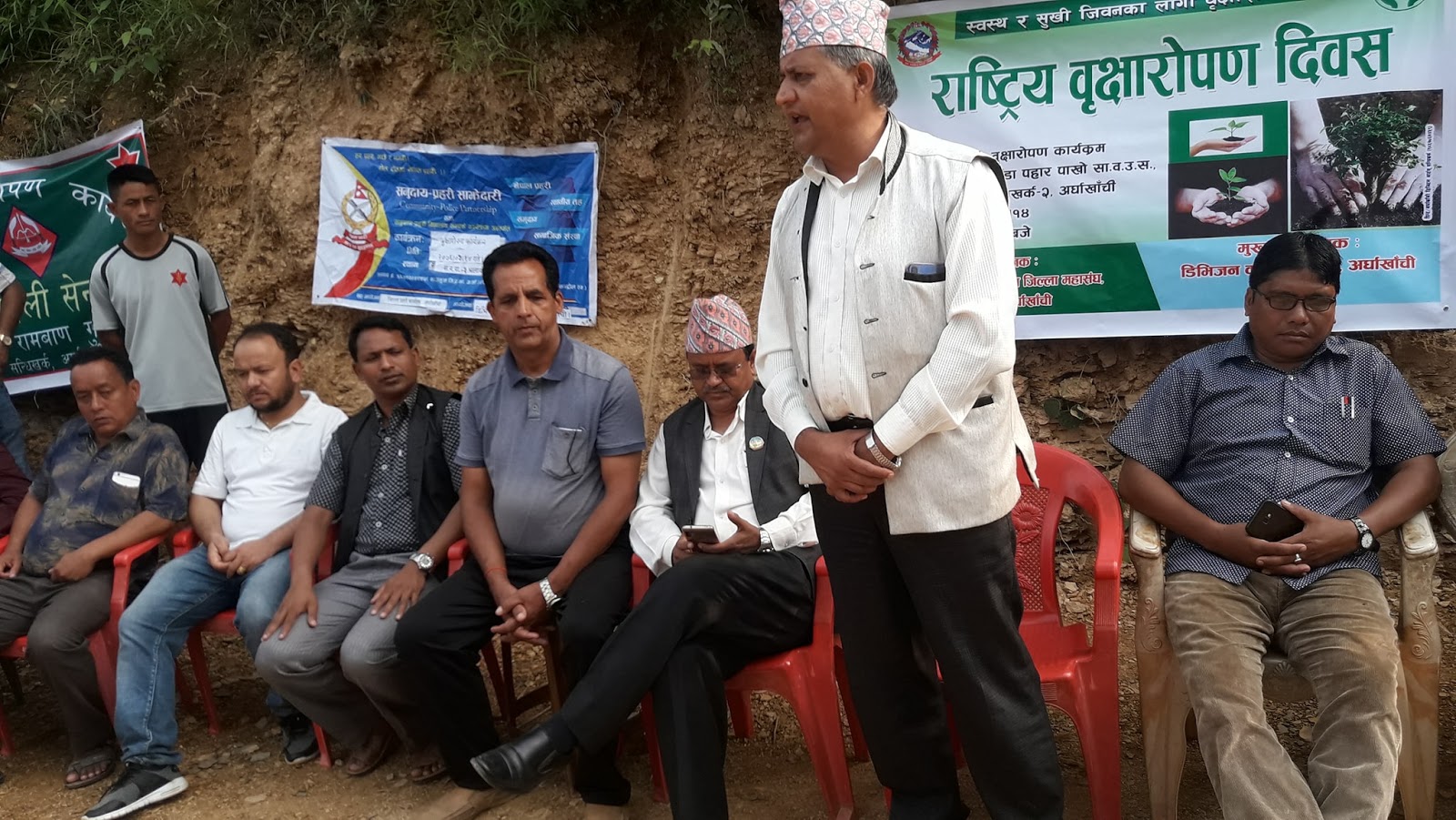वृक्षारोपणण कार्यक्रममा प्रदेस नम्बर ५ का सासद चेतनारायण आचार्य सासद रामजी प्रसाद घिमिरे, जिल्ला समन्वय समितिका उपप्रमुख ऋषि बहादुर पुलामी, सन्धिखर्क नगरपालिकाका उपप्रमुख ठाकुर कुमार बिक डिभिजन बन प्रमुख शिव शर्मा, प्रहरी नाउब उपरीक्षक प्रकाश बिष्ट साहायक प्रमुख जिल्ला अधिकारी बिक्रम थापा रामबाण गणका निरज भन्डारी वार्ड नम्बर २ का अध्यक्ष मोतिजग रायमाझी विभिन्न कार्यालयका प्रमुखहरु राजनीति दलका नेताहरु सुरक्षाकर्मि, सन्चारकर्मि सामुदायिक बन महासघका पदाधिकारी सदस्यहरु उधोगी ब्यबसायी,स्थानियबासीहरुको ठूलो सहभागीता थियोे ।