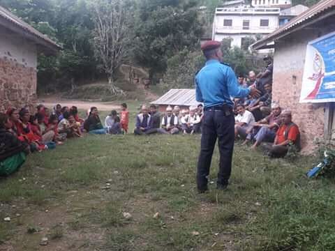 बाँगी , अर्घाखाँची । “समुदाय-प्रहरी साझेदारी कार्यक्रम” अनुसार जिल्ला अर्घाखाँची मालारानी गाउँपालिका वडा नं. ५ स्थित बाँगी भण्डारामा घरेलु हिंसा, बाल बिवाह, वहुविवाह र जंगली जनाबरको आक्रमण बाट बच्ने र बचाउने सम्बन्धि जनचेतना मुलक कार्यक्रम सम्पन्न भएको छ ।
