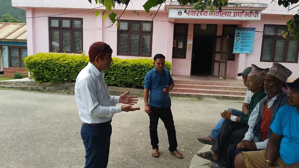सन्धिखर्क, अर्घाखाँची । जिल्ला प्रहरी कार्यालय अर्घाखाँचीको आयोजनमा “समुदाय-प्रहरी साझेदारी कार्यक्रम” अनुसार जिल्ला अर्घाखाँची सन्धिखर्क नगरपालिका वार्ड नं. १ जिल्ला अस्पतालमा बर्षातको समयमा फैलन सक्ने संक्रामक रोगहरुबाट बच्न अपनाउनु पर्ने सावधानीको बारेमा प्रशिक्षण कार्यक्रम सम्पन्न भएको छ ।
